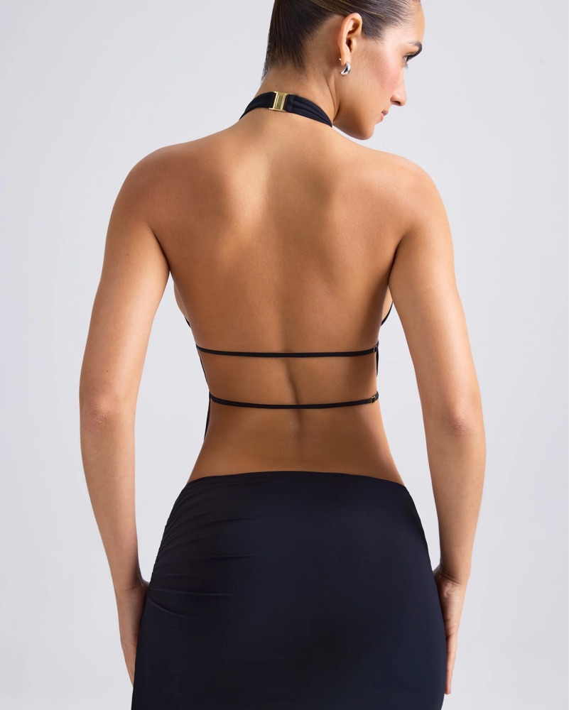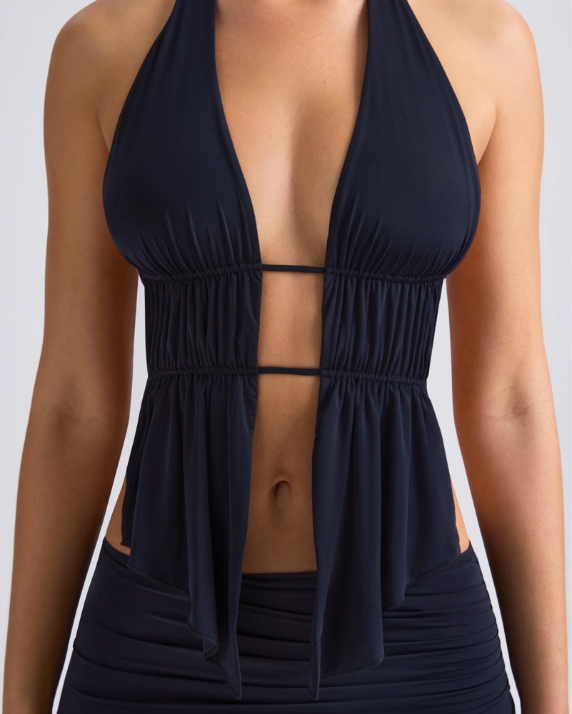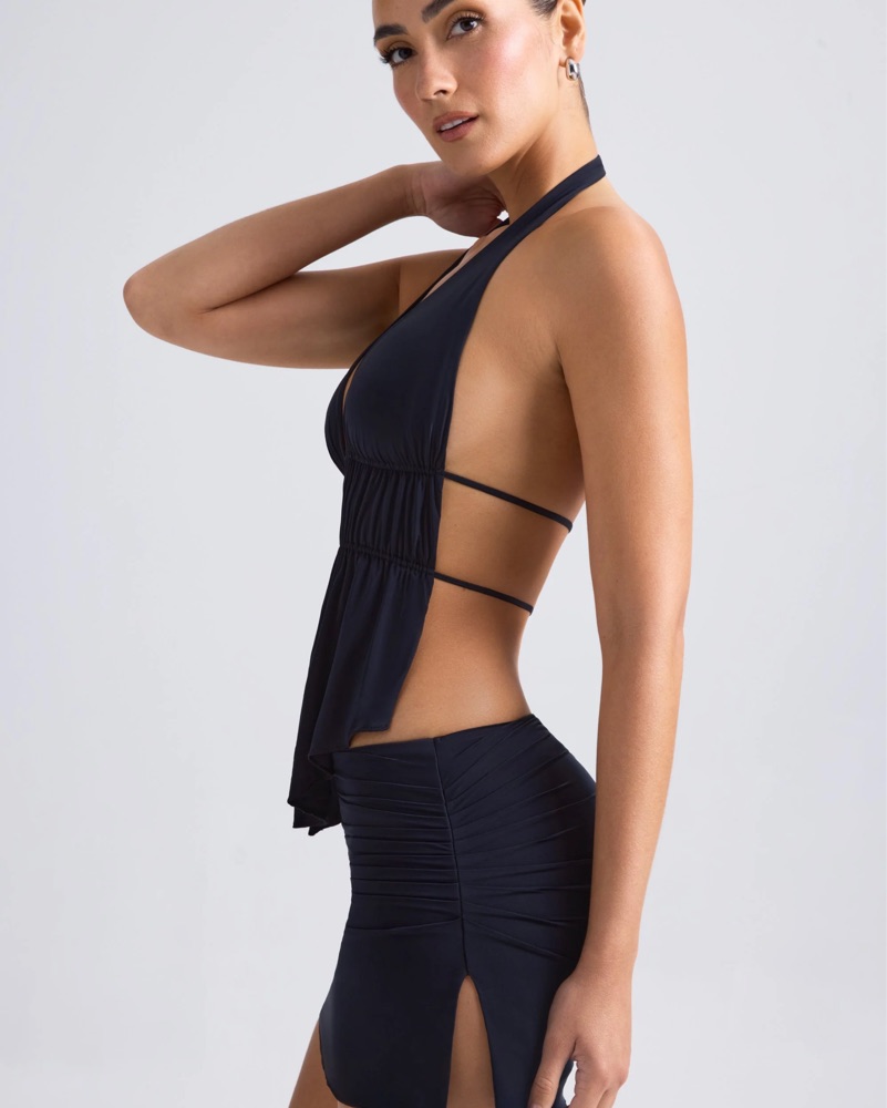 Cut-Out Ruched Halterneck Crop Top in Black