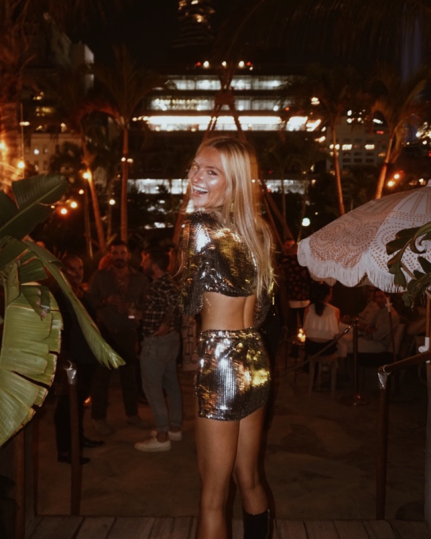 Top and Mini Skirt Set inspired by Felicity Shagwell in Austin Powers, handmade by a prominent Hollywood designer, bra size 34A, super short skirt