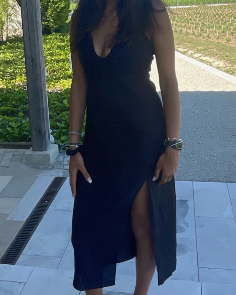 Long Zara black dress that’s halter style and ties in the back