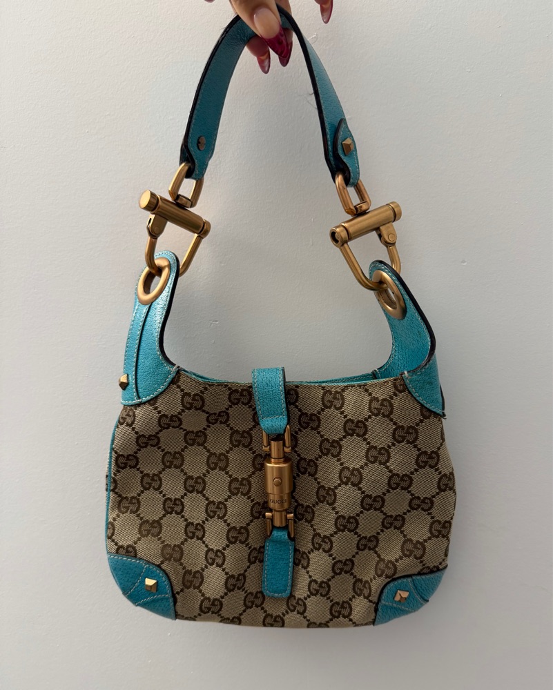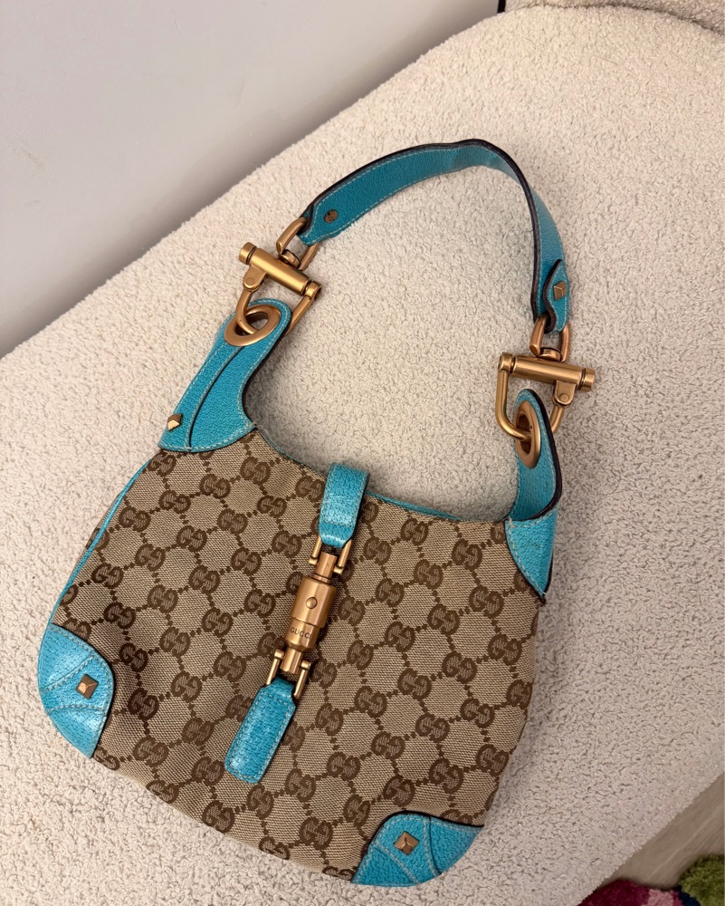 This stylish Gucci Jackie shoulder bag is perfect for any fashion-forward occasion. The versatile design and luxurious monogram pattern make it a must-have accessory. It’s the perfect size for a fun night out 🦋