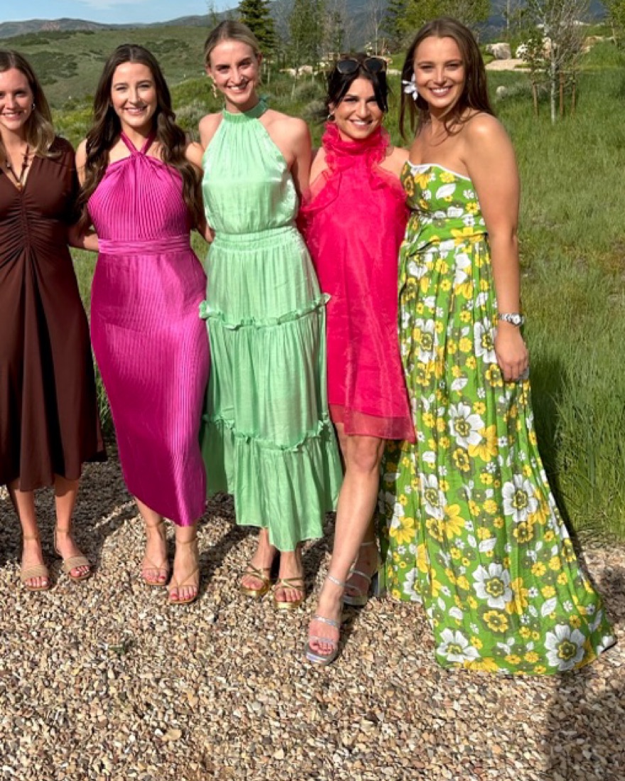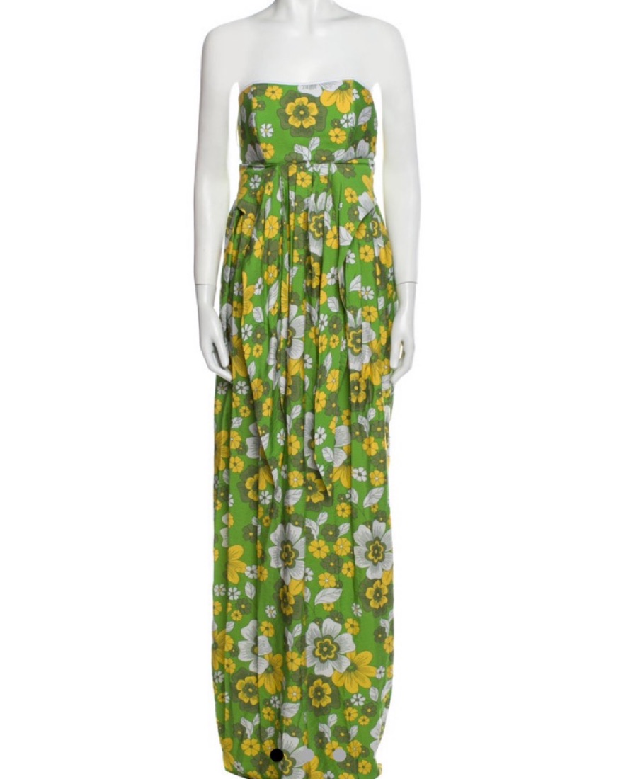 Amazing cotton material makes this gown feel so light weight for a spring/summer event. Only worn once - excellent condition! I had it tailored to hit the floor with my 4 inch platforms (I’m 5’7”). Love this dress so much and it deserves to get more action than I alone can give it!