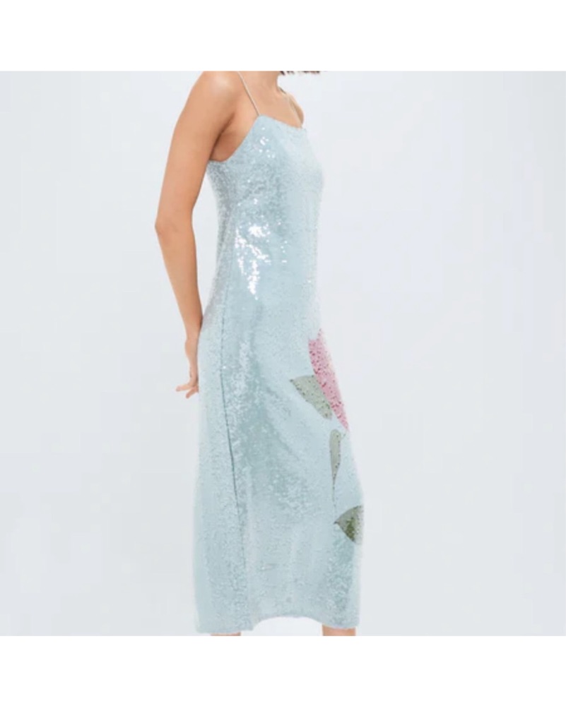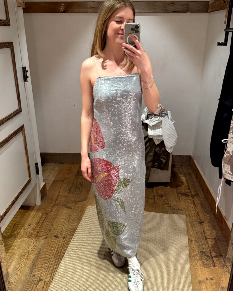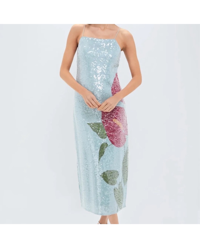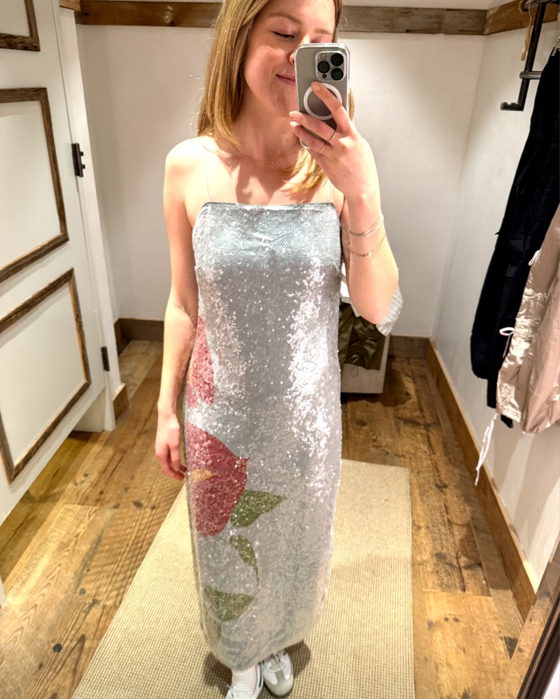 Wore this for a wedding and got so many compliments! Color is definitely closer to my photos- more a blue/grey. Detail info: • 46" center front length