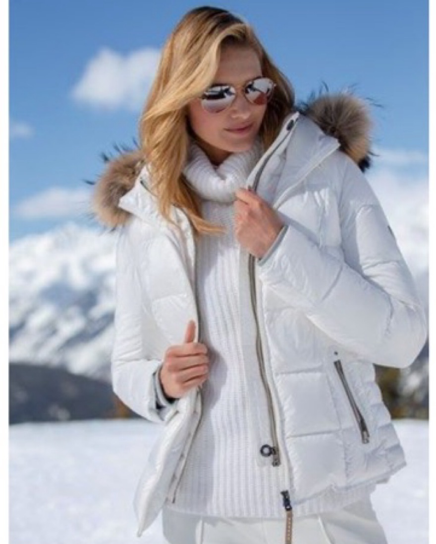Luxurious down jacket by Bogner. This is very warm (I usually just wear a thin shirt under) and a chic ski jacket perfect for Aspen / Deer Valley-type resorts. Double zipper layers and removable fur hood. Note there’s a small tear in the back that is fully sealed and barely noticeable. Size EU 38.