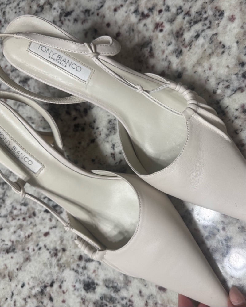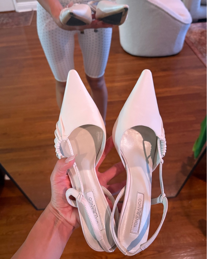 Tony Bianca Sakai slingback kitten heels pump in Dove Nappa (white) in size 8 women’s.
