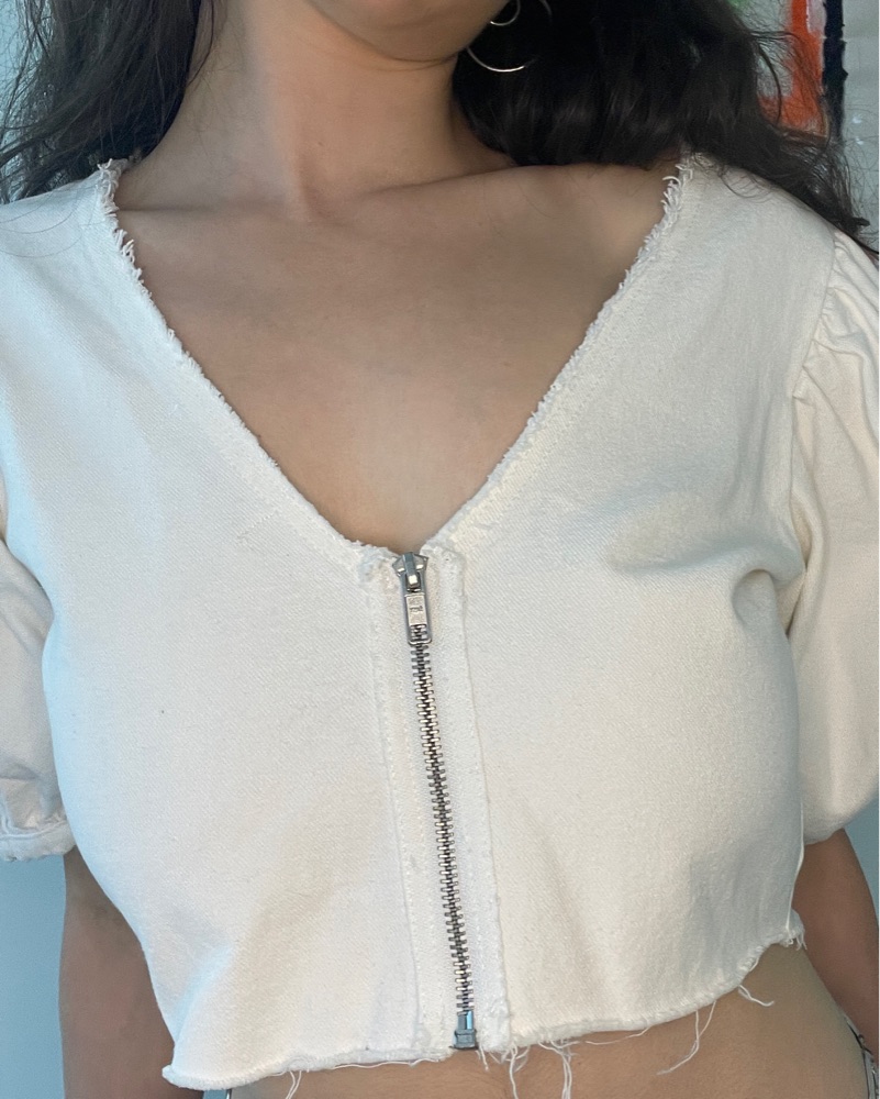 White Denim Zip Up Top