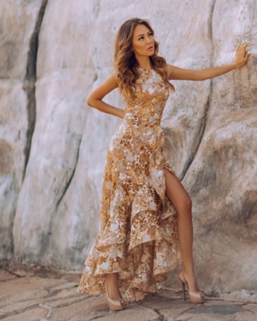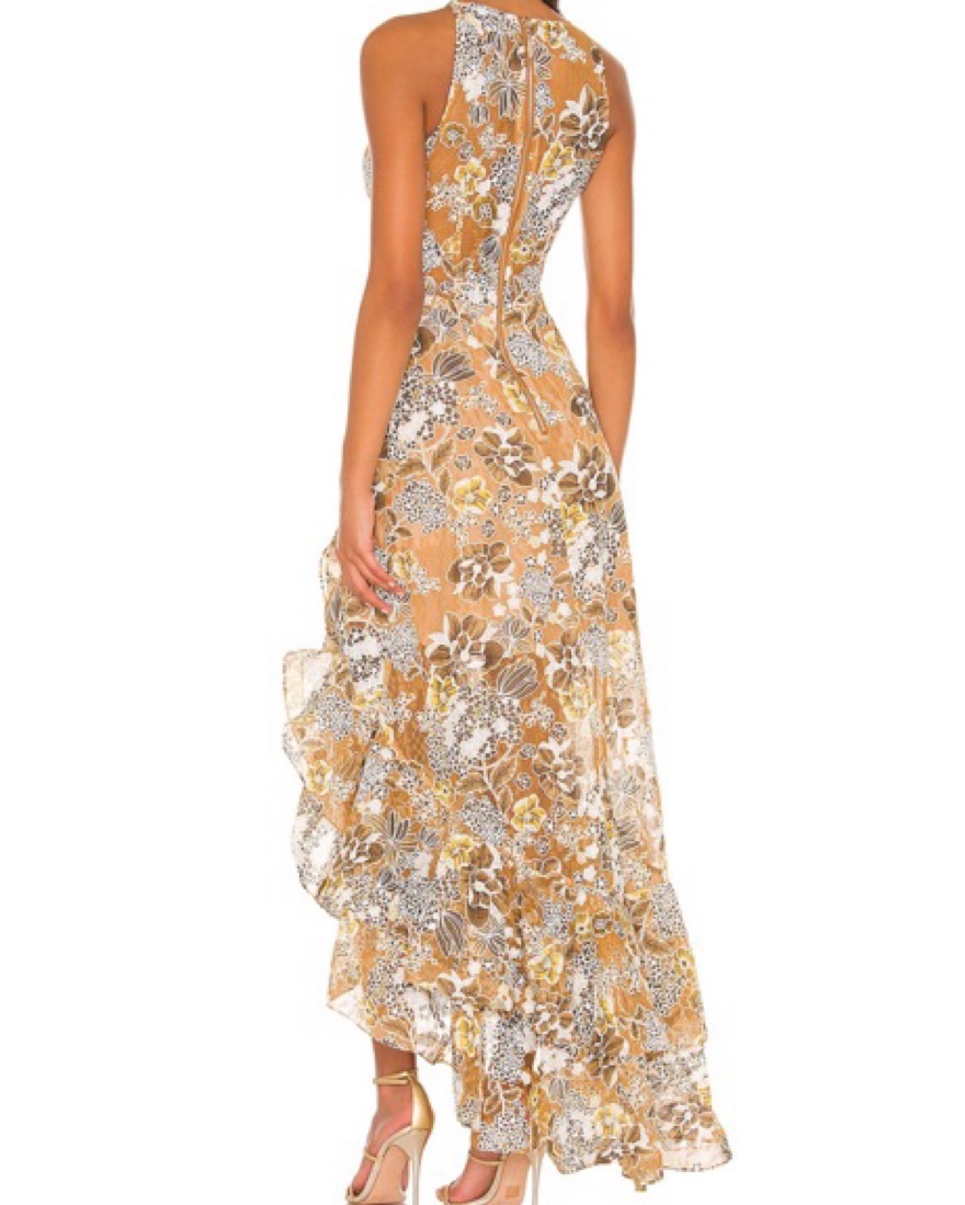 This details are so beautiful in person! Fits true to size, its lined and is long.