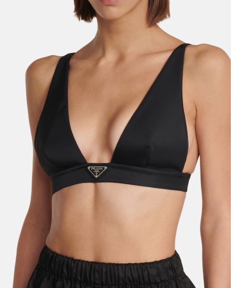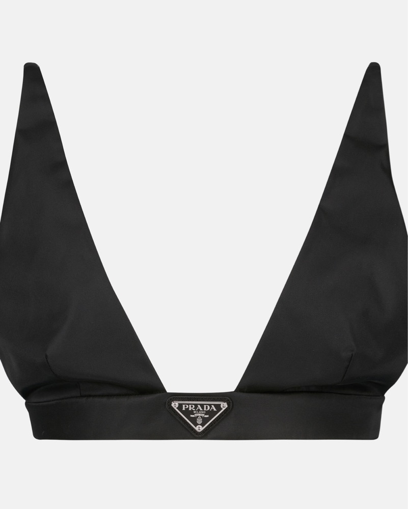 This bralette from Prada is the perfect layering piece. It's made from sustainable Re-Nylon, the brand's signature fabric, and embellished with the iconic logo plate, which is trimmed by Saffiano leather. Size 36.
