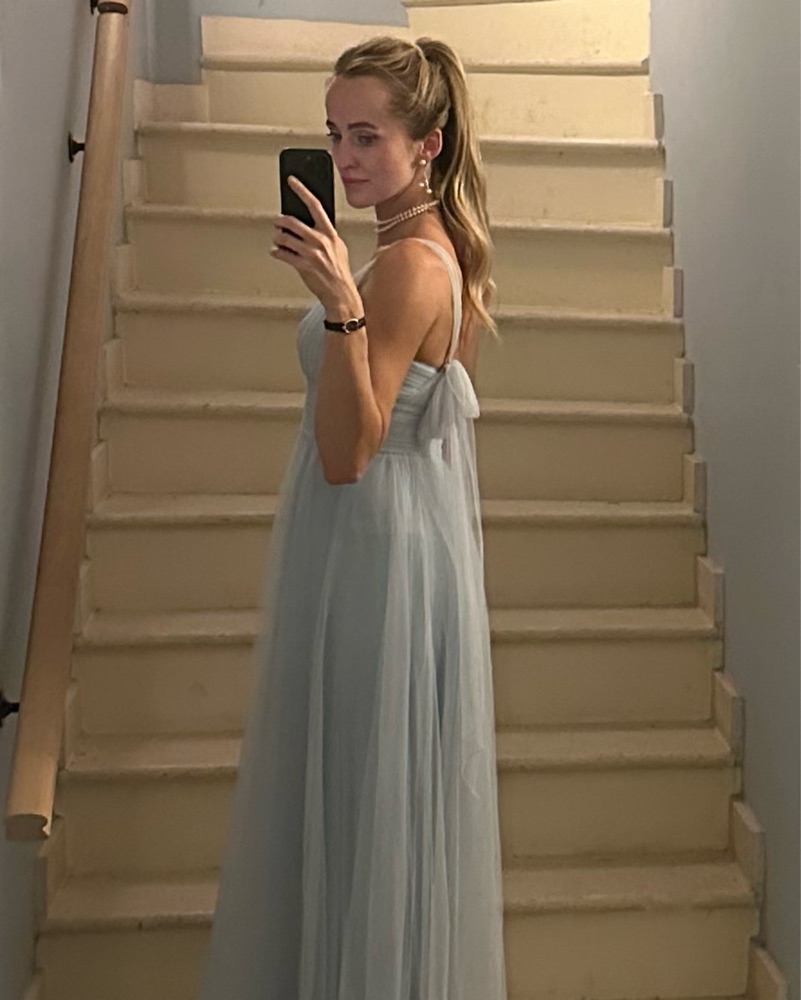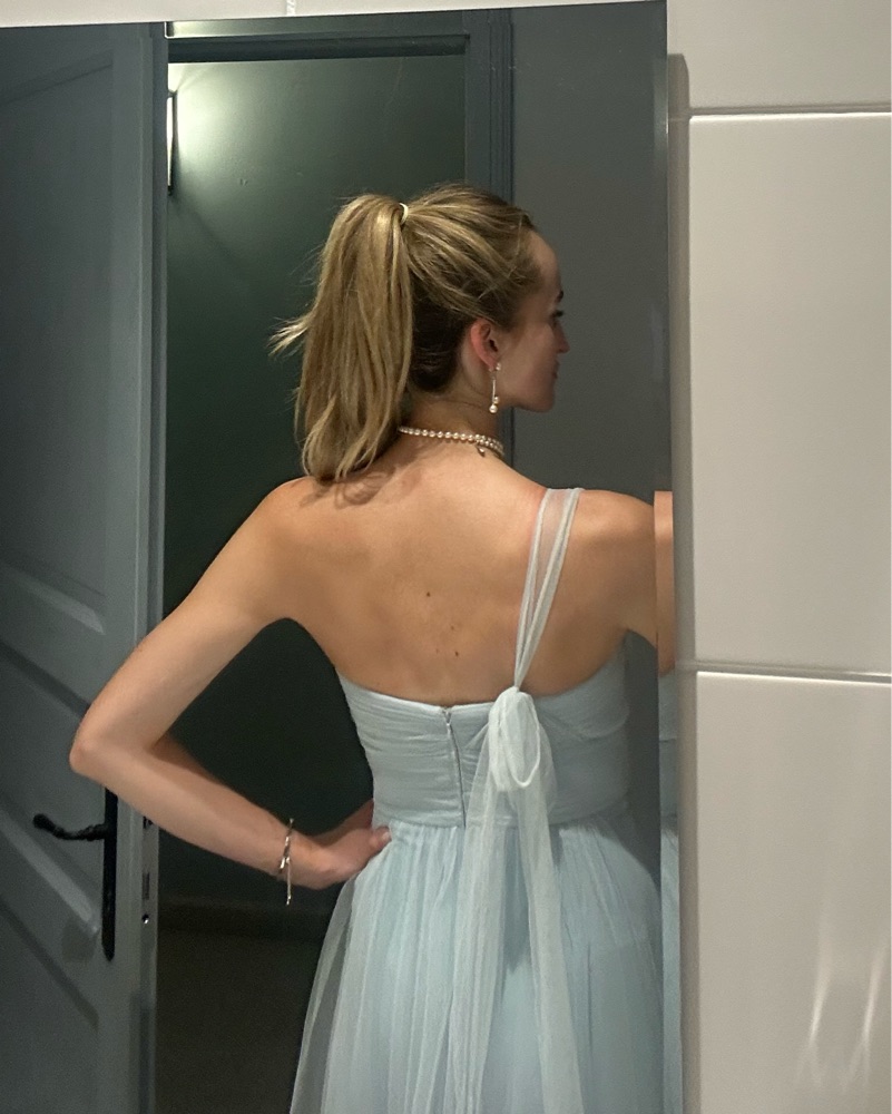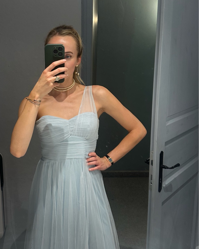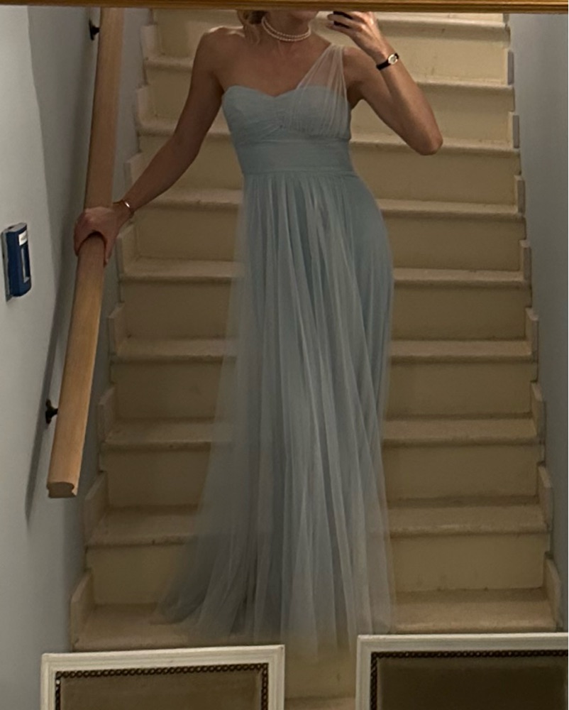 This stunning chiffon/tull gown is perfect for any formal occasion. I am renting out the jewelry with it too if interested.