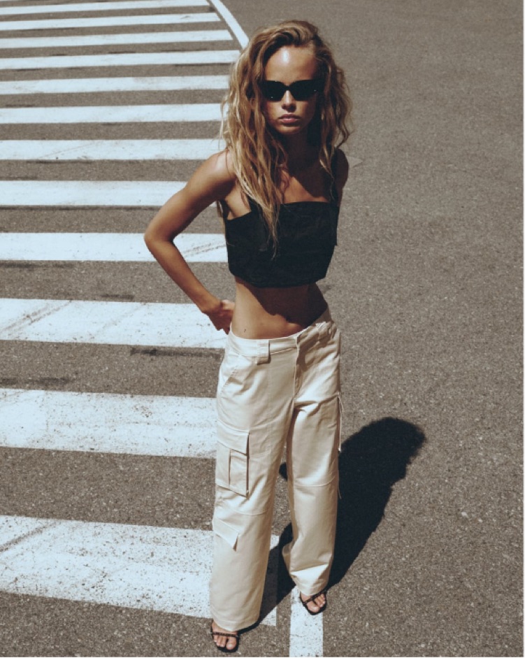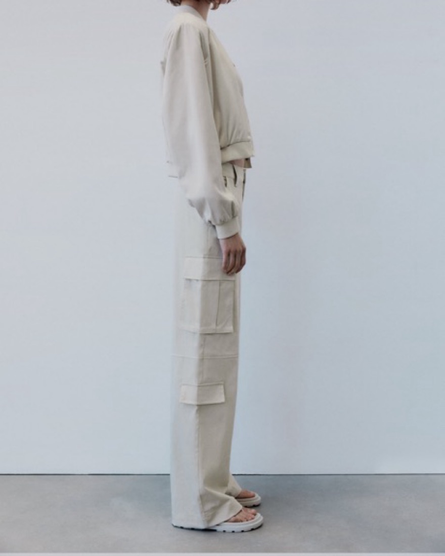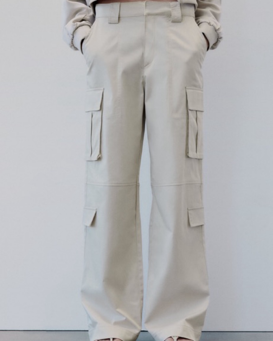 Zara White Satin Cargo Pants