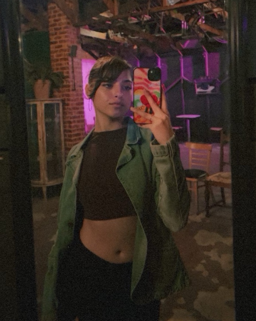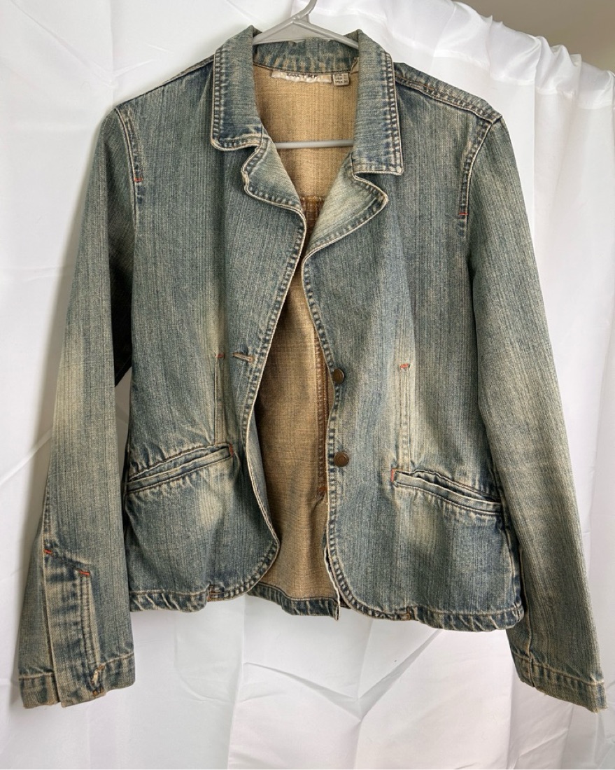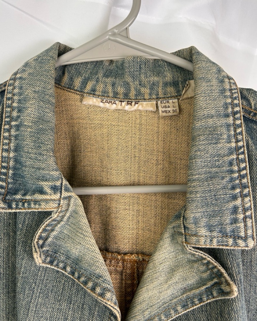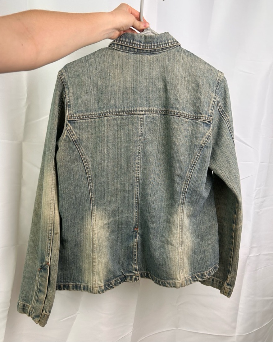 light wash, y2k look, USA Large/EUR Large but fits like Medium (for reference, im 5'6")
