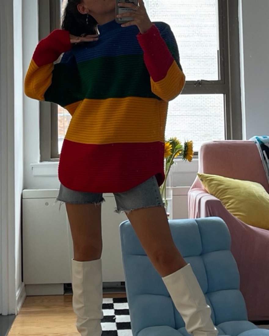 Cute pop of color sweater for cold winter days or ski trips!! Super fun to style and v cozy and warm