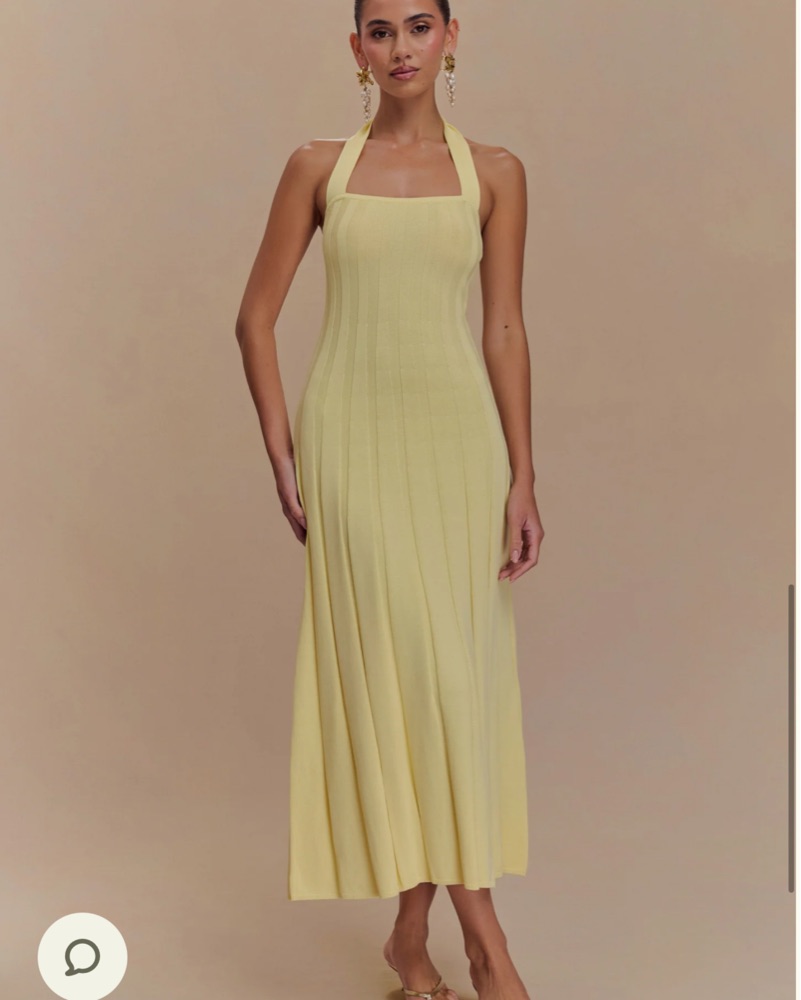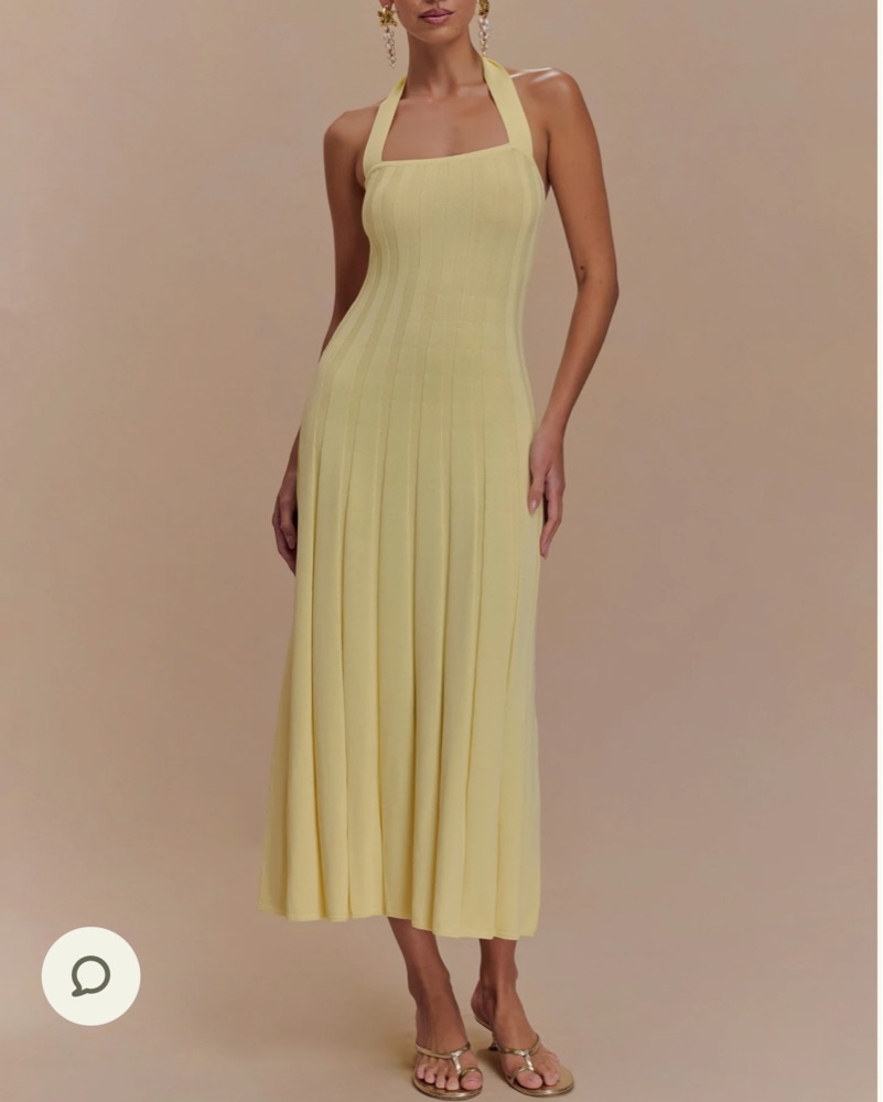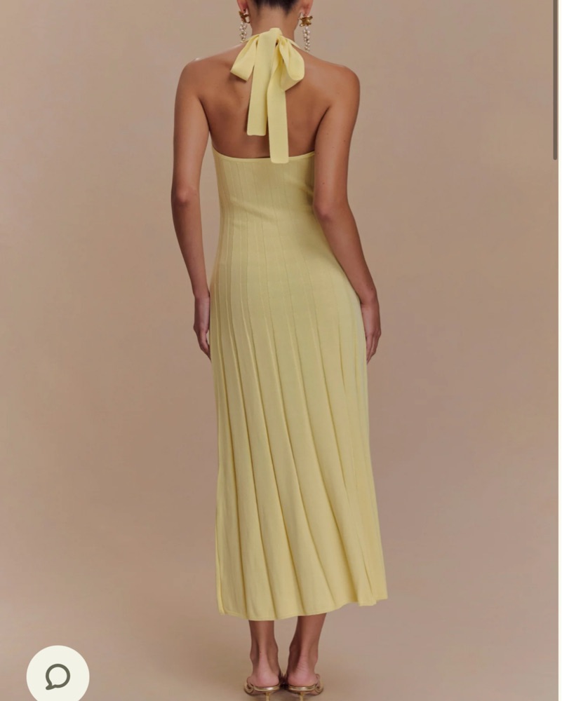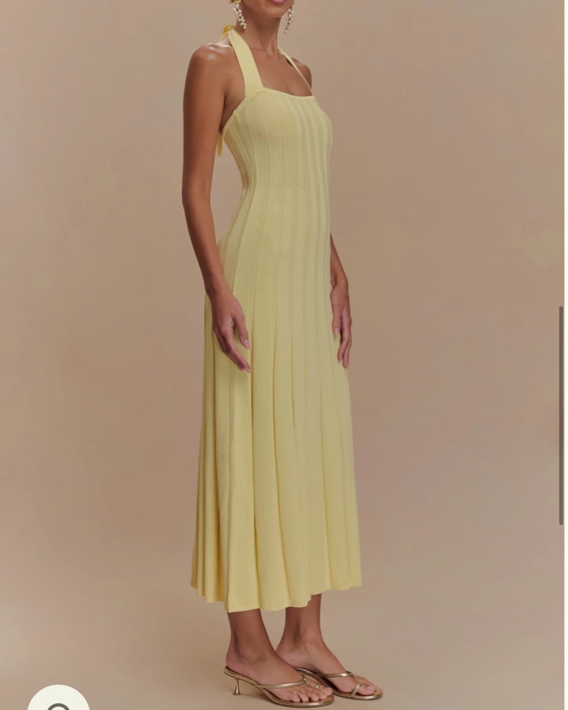 The JACQUI Halter Knit Midi Dress is a refined blend of modern simplicity and feminine charm. Designed with a sleek halter neckline, this dress beautifully elongates the silhouette while offering a timeless, sophisticated look. The ribbed knit fabric provides a figure-hugging fit, while the pleated