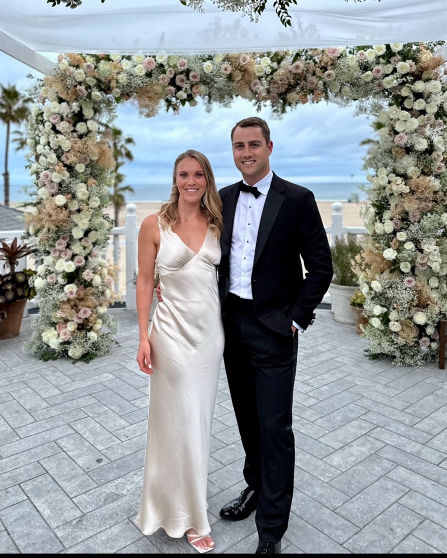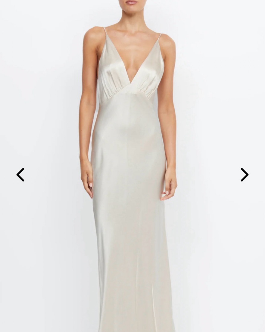 Silk slip dress in color sand, had straps shortened slightly (pictured wearing the dress at the end).