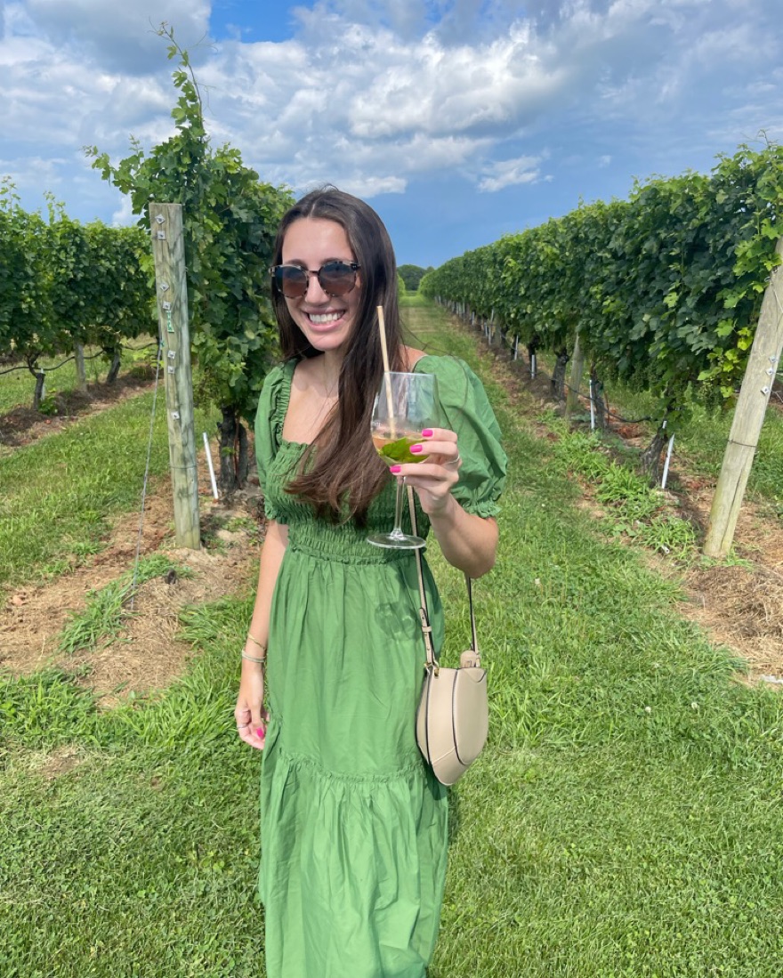 Worn once! Puff Sleeve Smocked Bodice Midi Dress. Perfect for a winery, classy brunch, garden party.