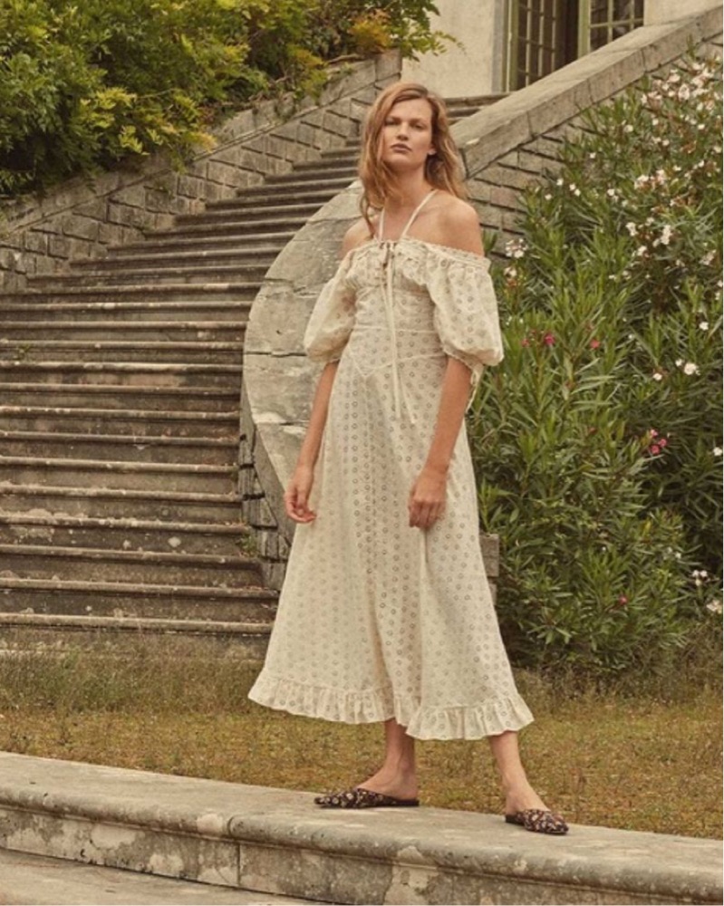DOEN Eyelet Puff Sleeve Maxi Dress