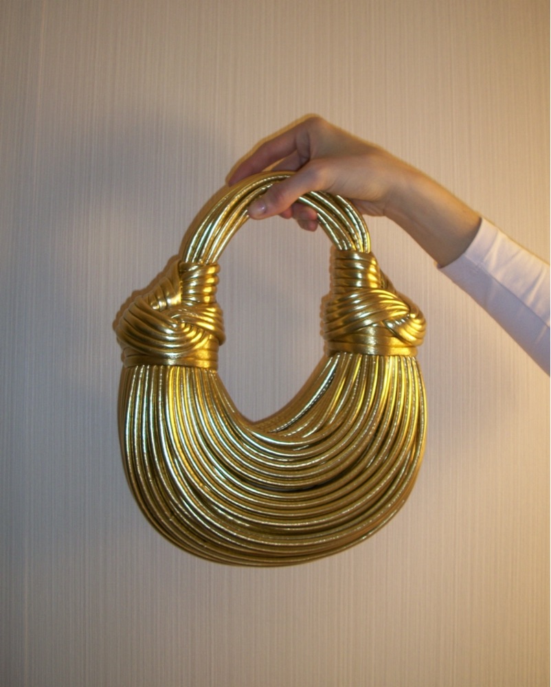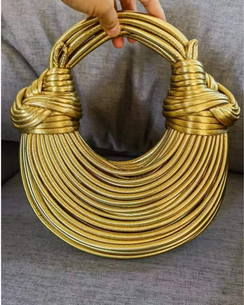 This striking gold woven necklace is a bold statement piece that will elevate any outfit. Wear it to an elegant event or night out for a chic, high-fashion look.