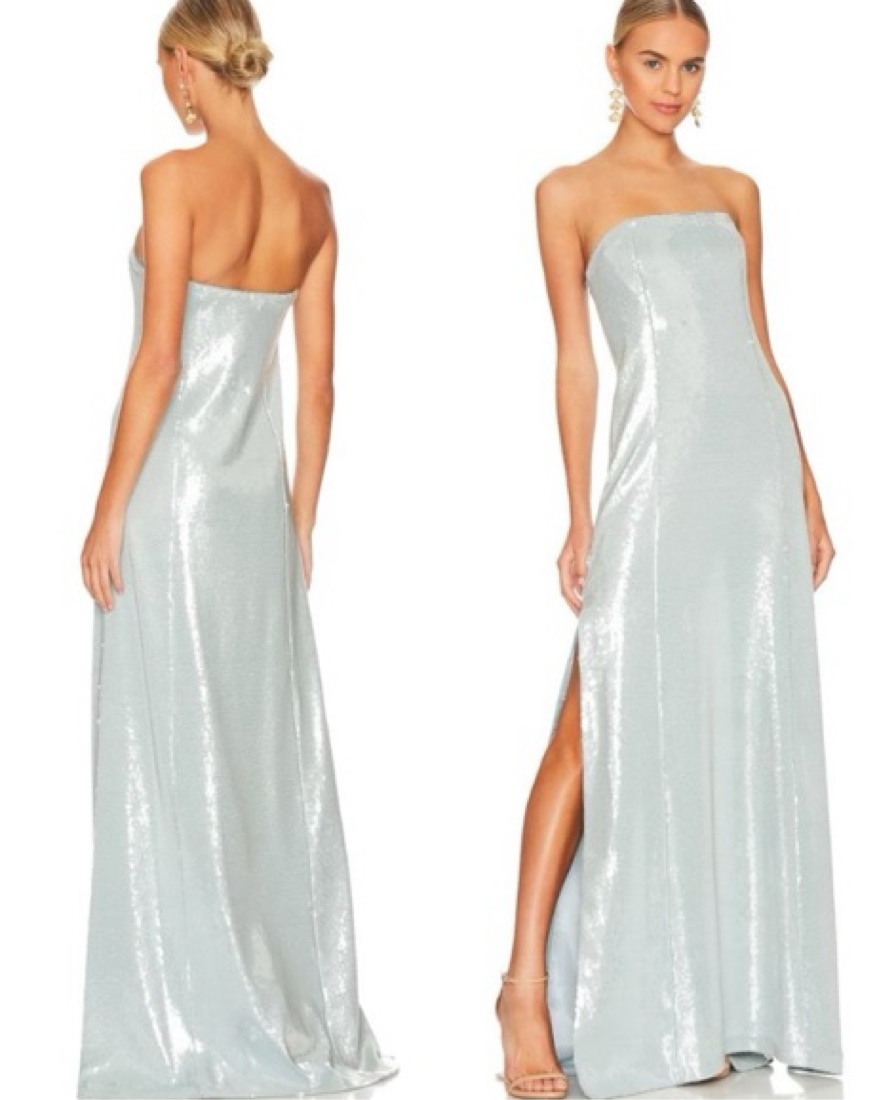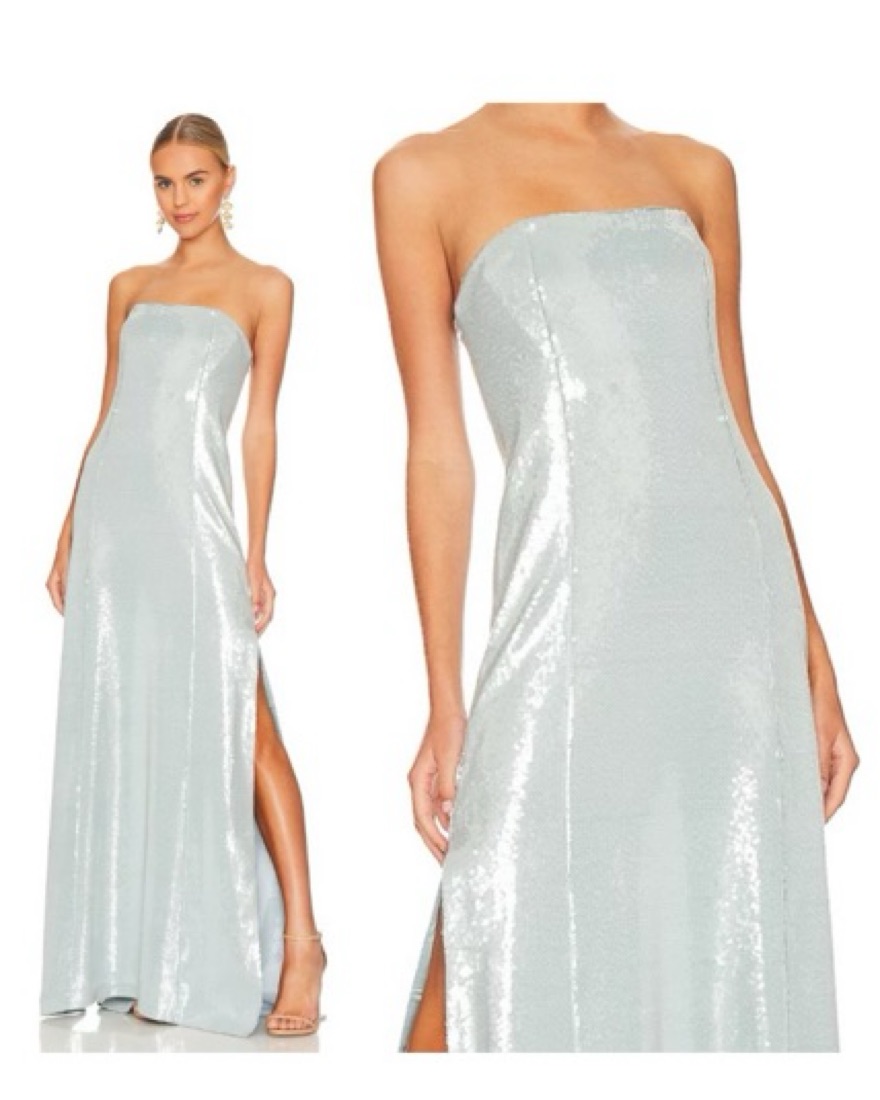 Cinq A Sept Collins Strapless Sequin Long Gown, only worn once. Altered the bottom to fit with very high heels and I’m 5’2