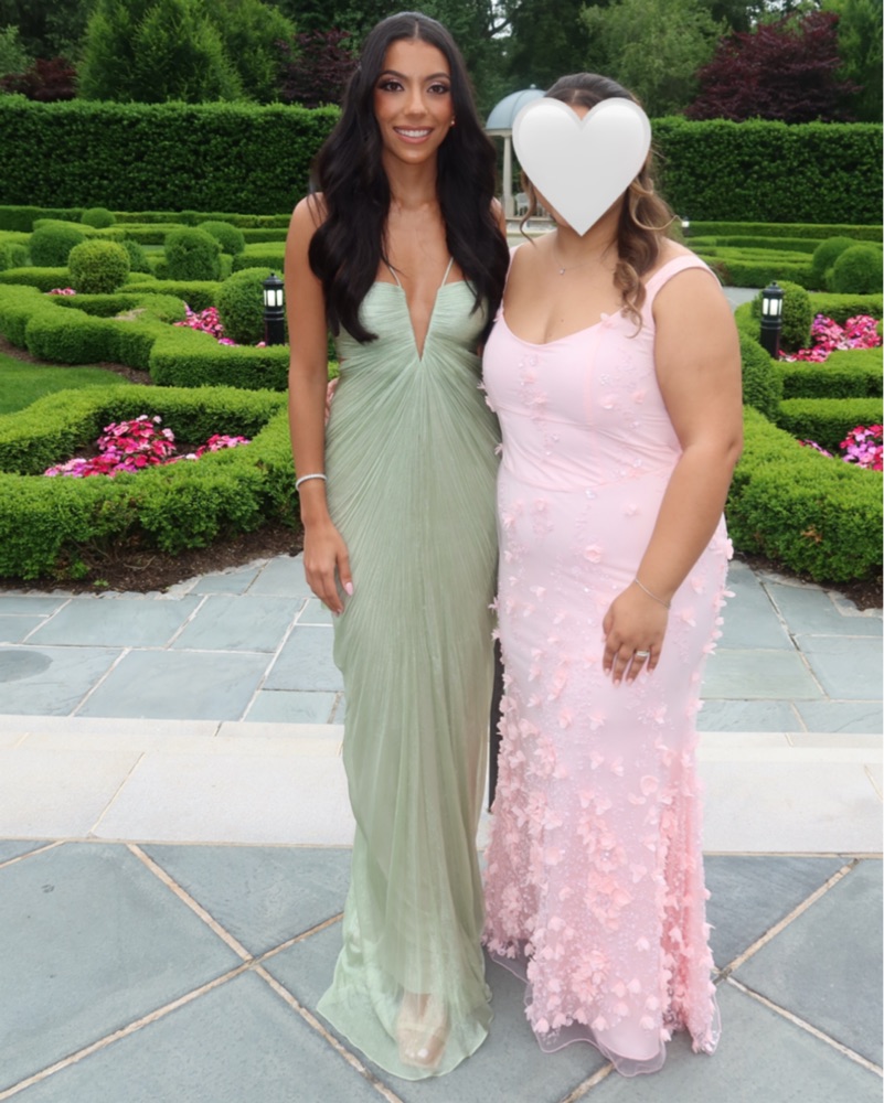 Beautiful sage gown with a gold shimmer, worn once for 2 hours.