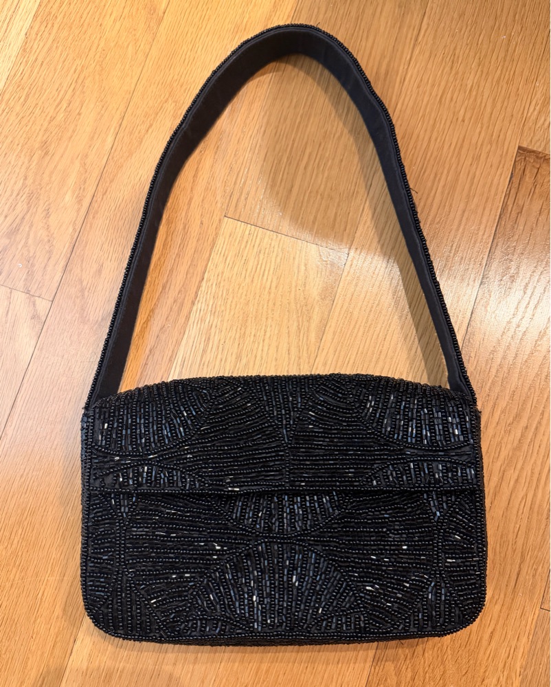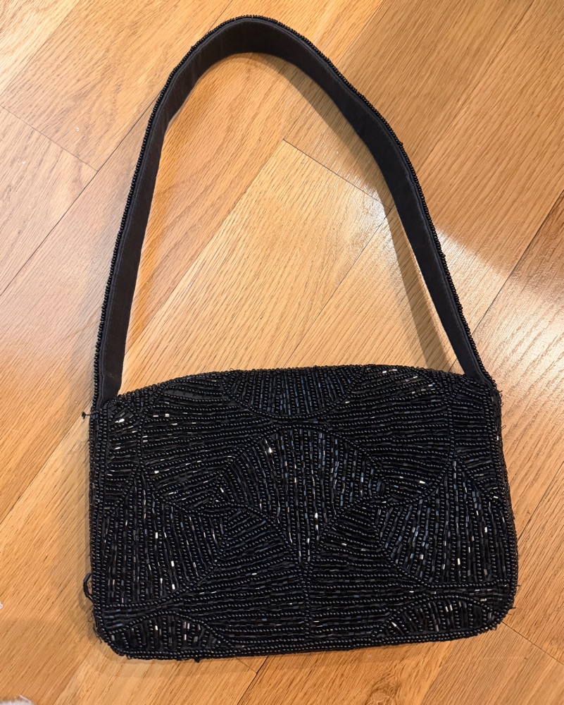 All black beaded bag, slight fraying on the side but otherwise perfect condition