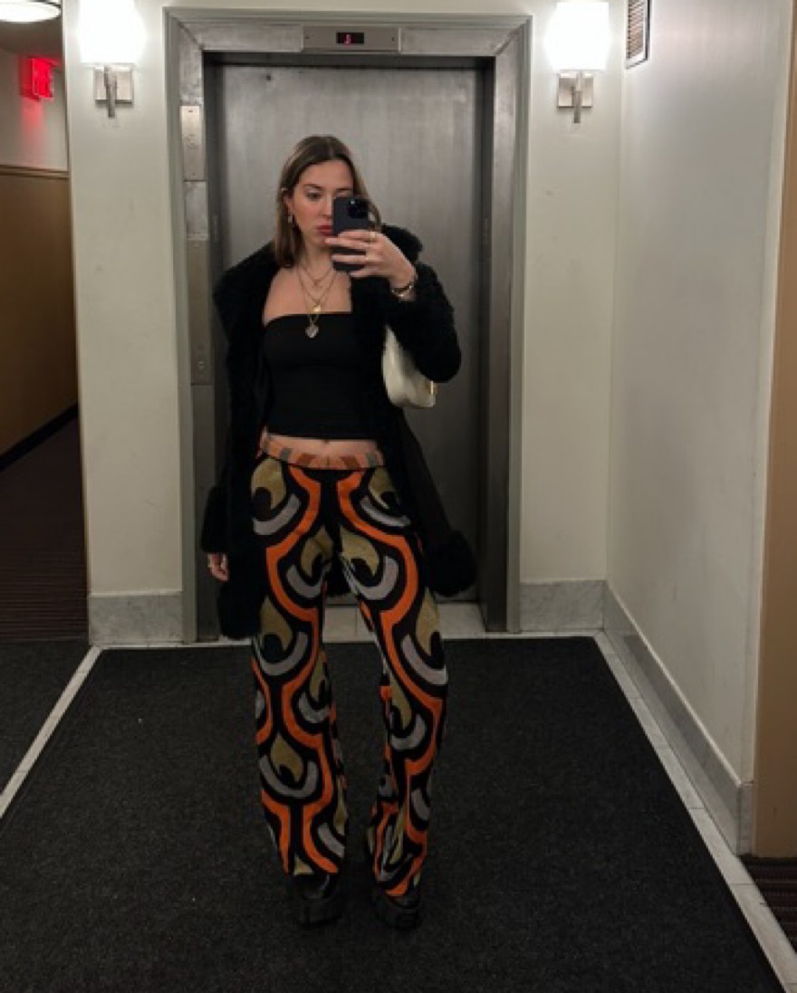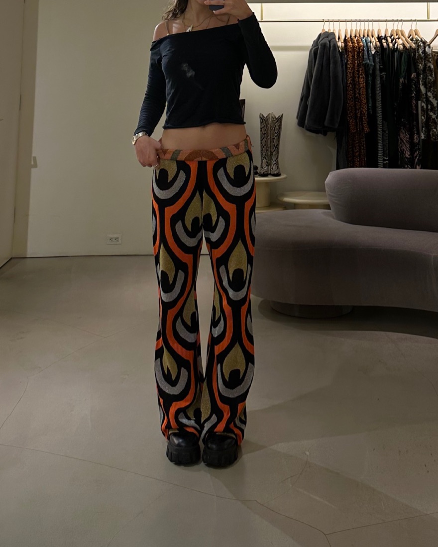Super fun orange and gold pants. Size L, I’m an S/M but I fold them and have them low waisted ❤️ would be cool for a retro Halloween look