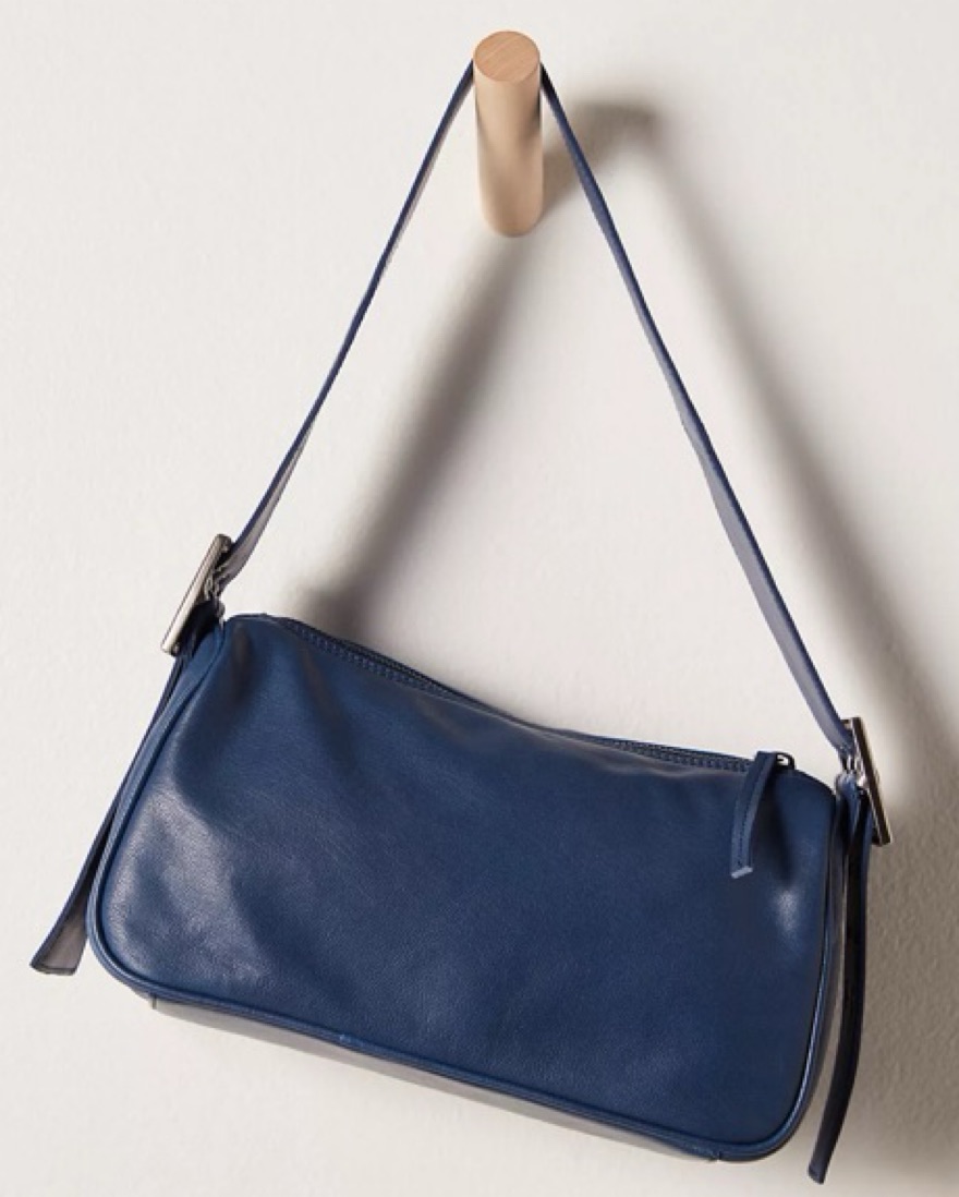 A sleek and stylish navy blue leather hobo bag perfect for everyday use or dressing up an outfit.