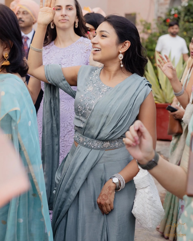 Pastel Stitched Ready Sari by Custom Made - Pickle