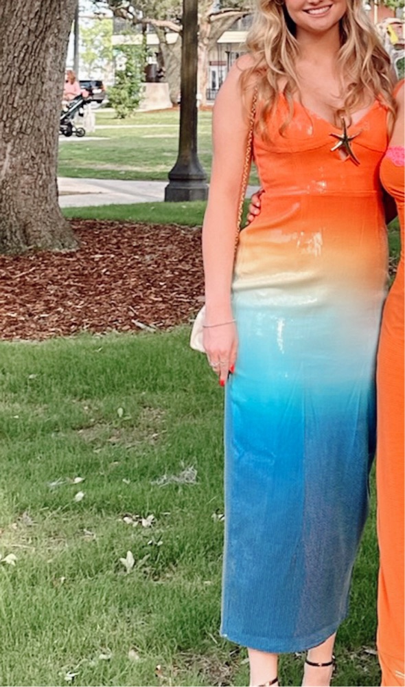 Midi dress with ombré sequins and detachable starfish pin. Worn once and dry cleaned.