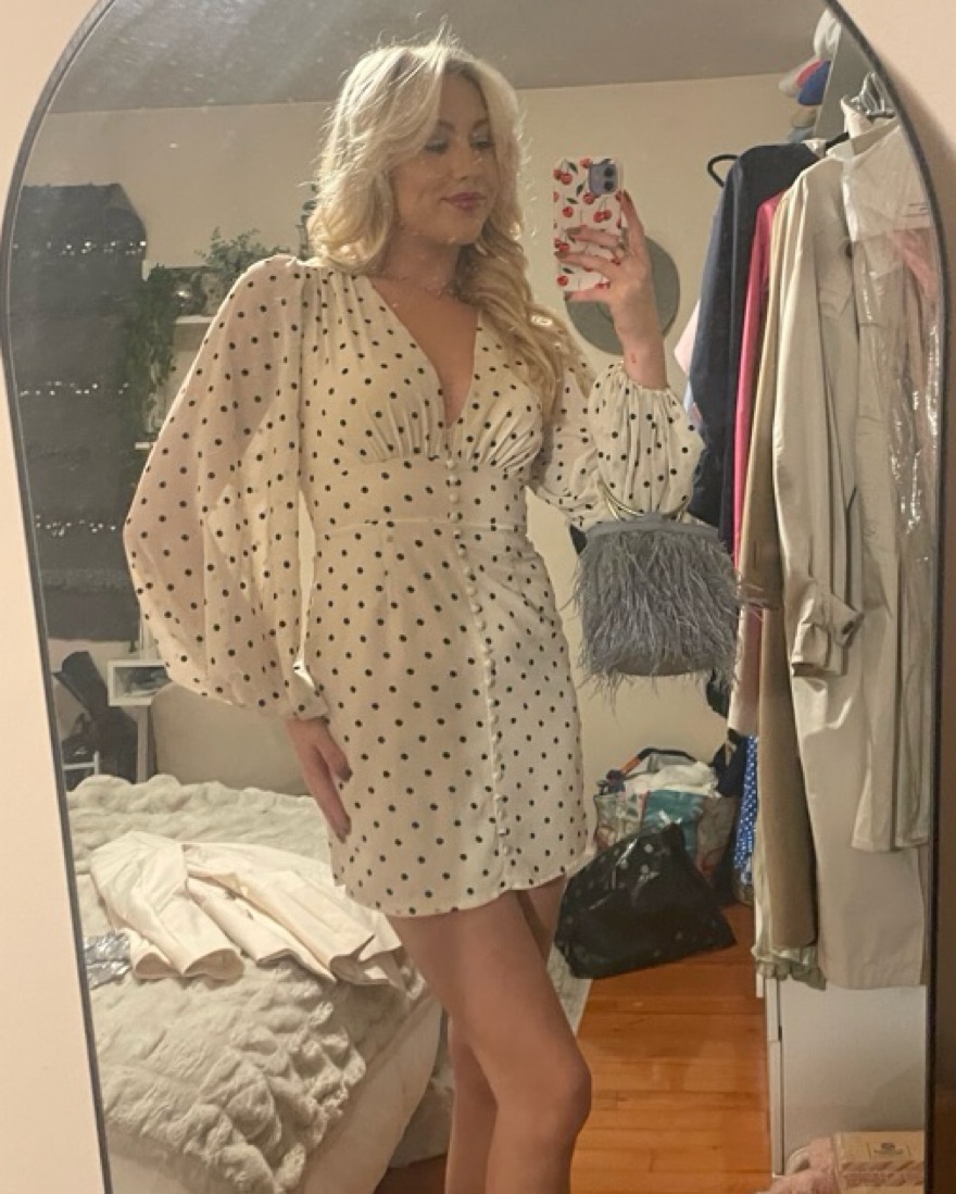 White Polka Dot Puff Sleeve Mini Dress by Urban Outfitters - Pickle