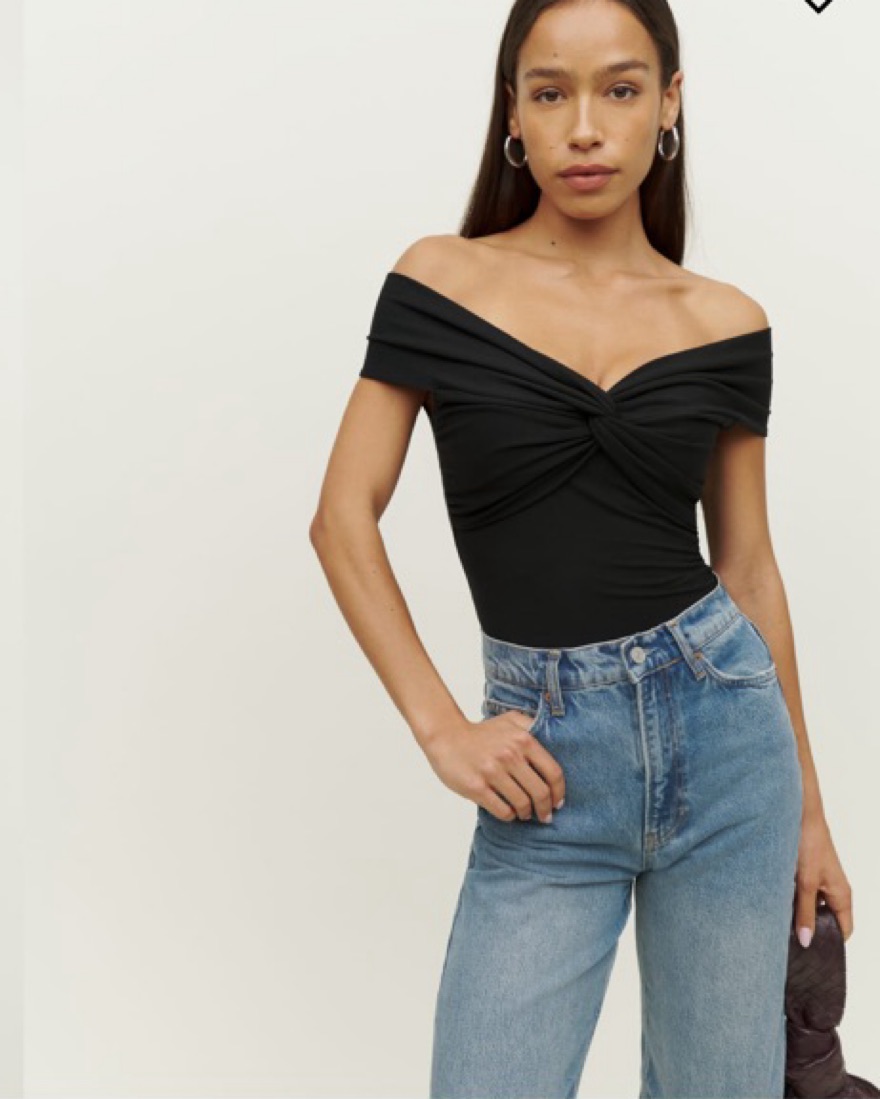 Reformation Ezlynn Black OffShoulder Top