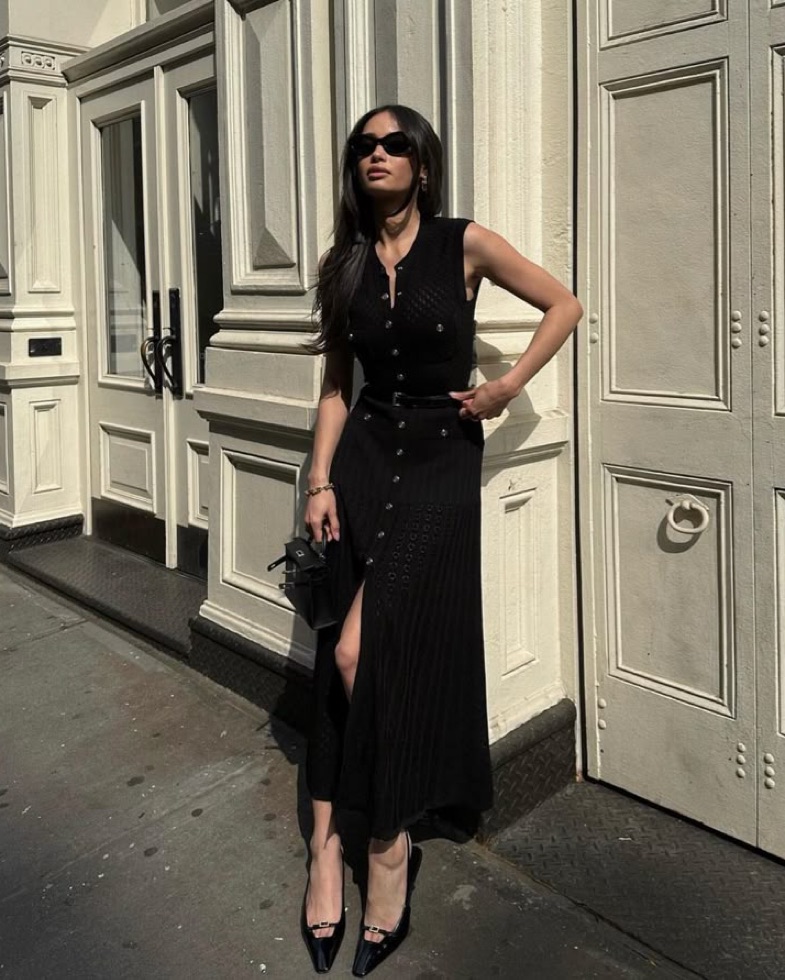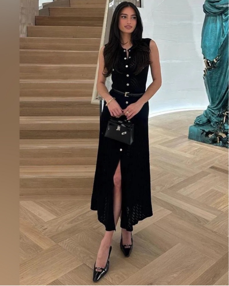 Sophisticated and stylish, this black midi dress is perfect for a formal event or night out. As seen on kelsey merritt