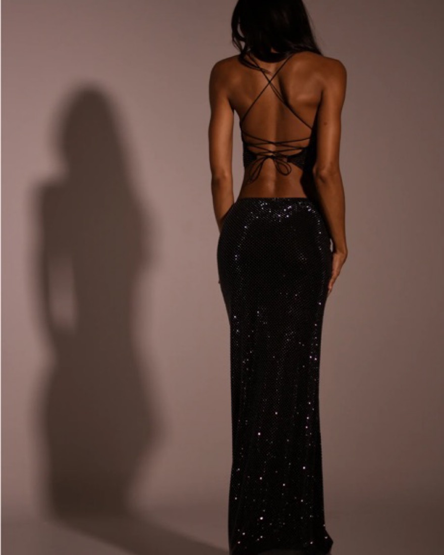 TAMRA is perfectly suited for fancy party wear with a statement make-up look or as an added touch of sparkle to round out your summer wardrobe. The fully lined top features elastic straps that criss cross over the back and rhinestone embellishment with a lightweight construction so you can keep cool