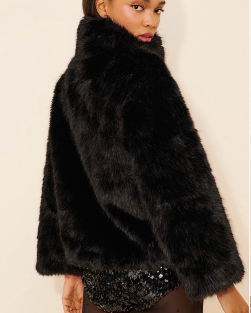 Bardot black faux fur turtle sweater by Bardot - Pickle