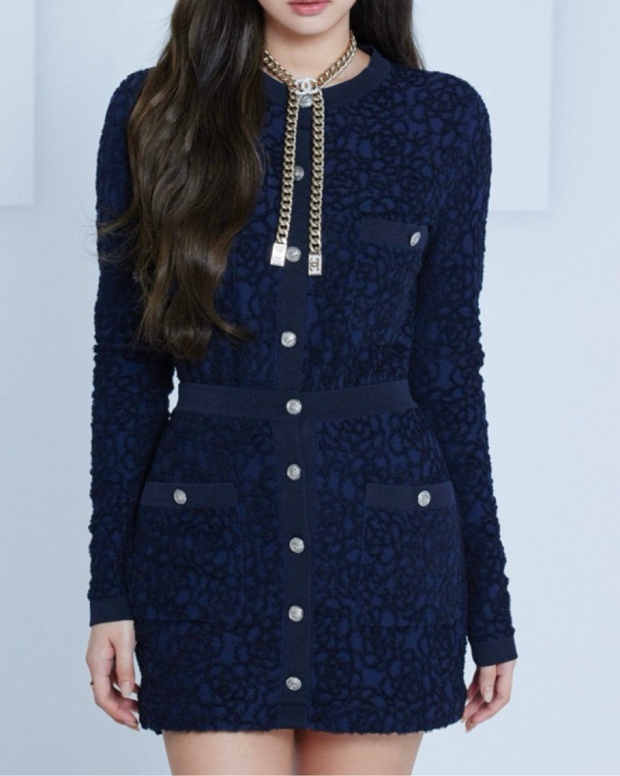 Chanel Navy Blue Long Sleeve Dress