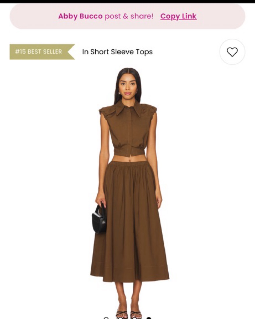 brown Calmia Coehelo collared top and skirt set. Brand new worn once. Super cute!!