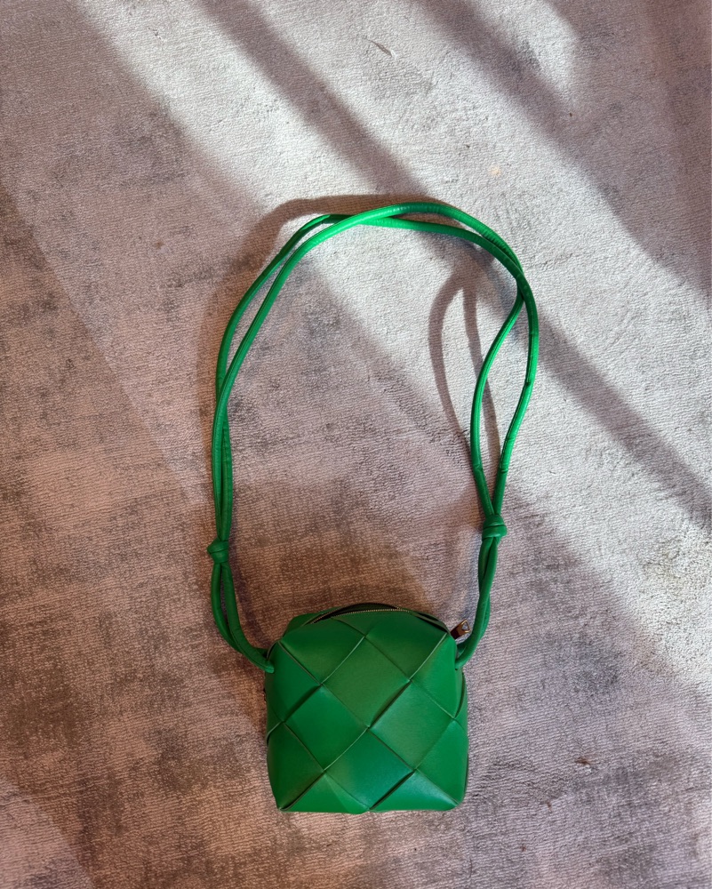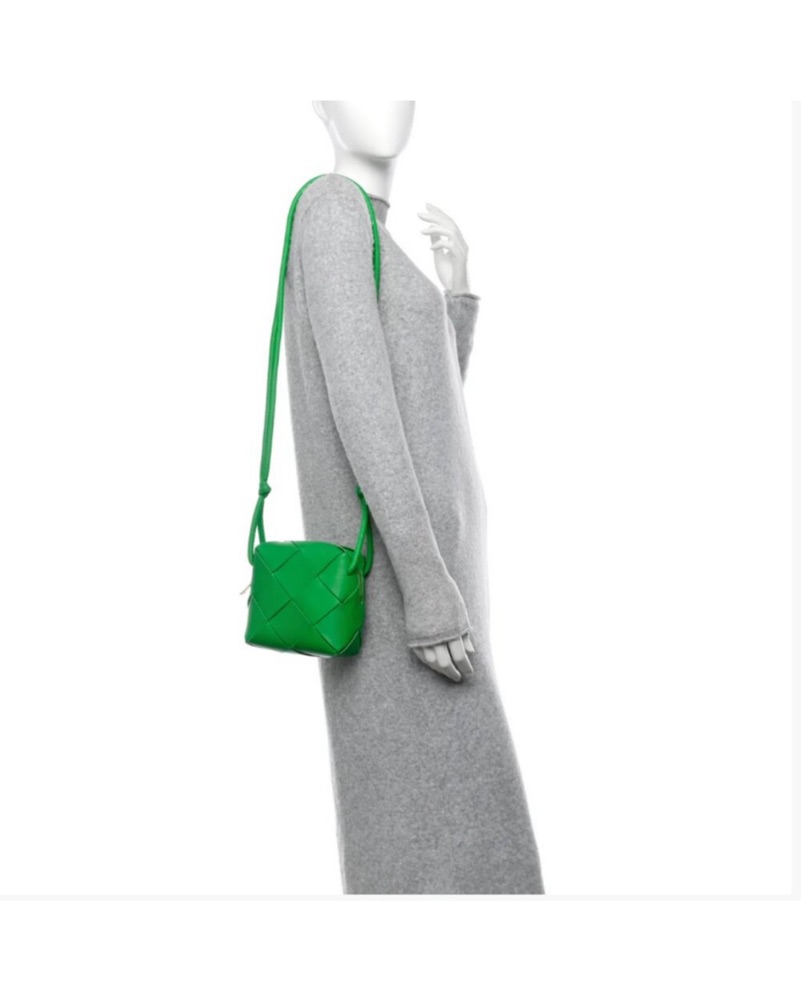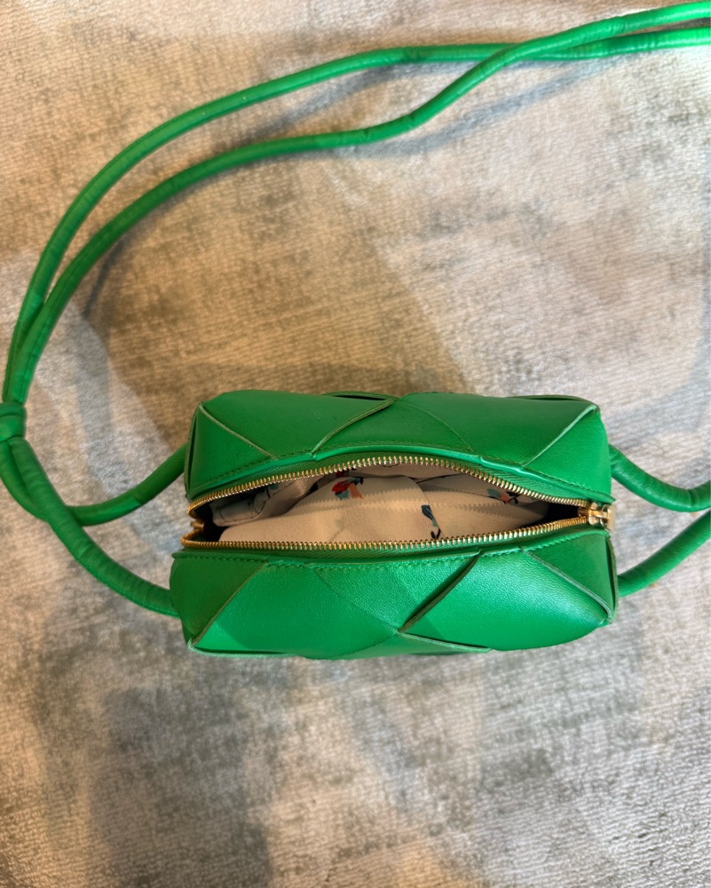 PERFECT CONDITION Bottega Veneta Lambskin Maxi Intrecciato Mini Cassette Camera Bag in Parakeet