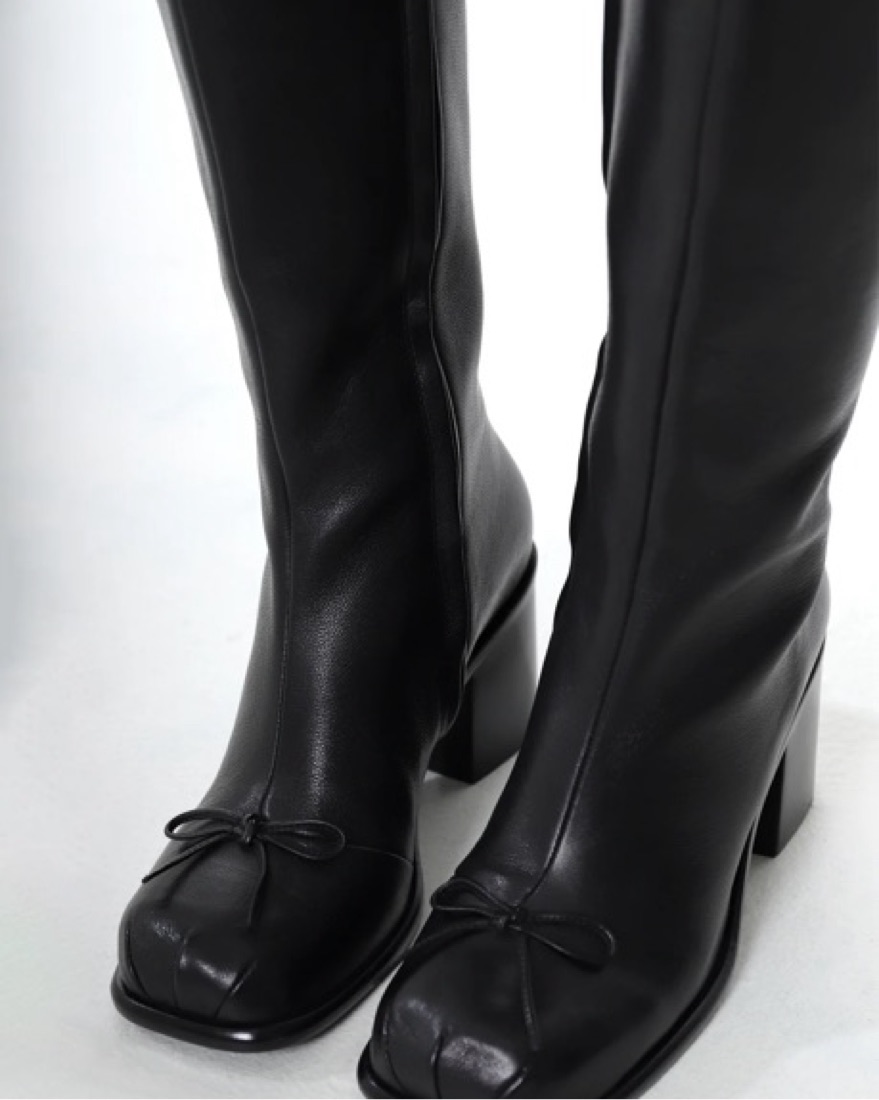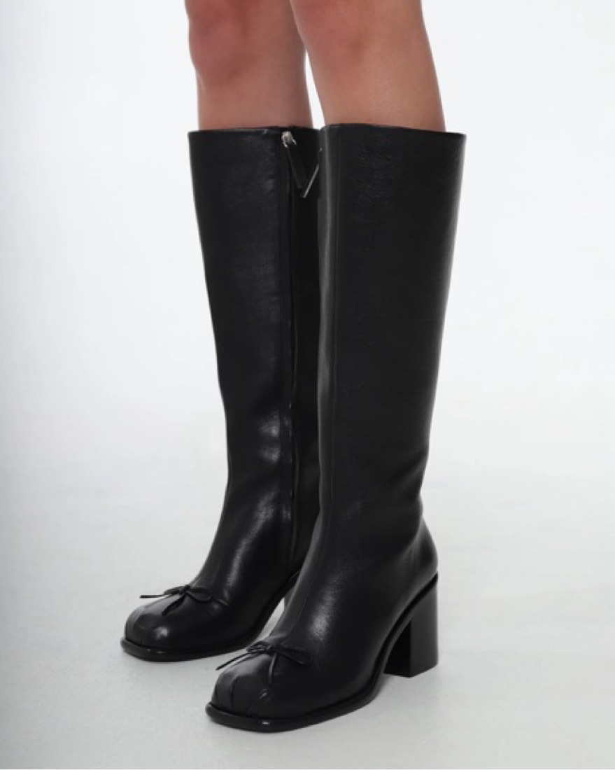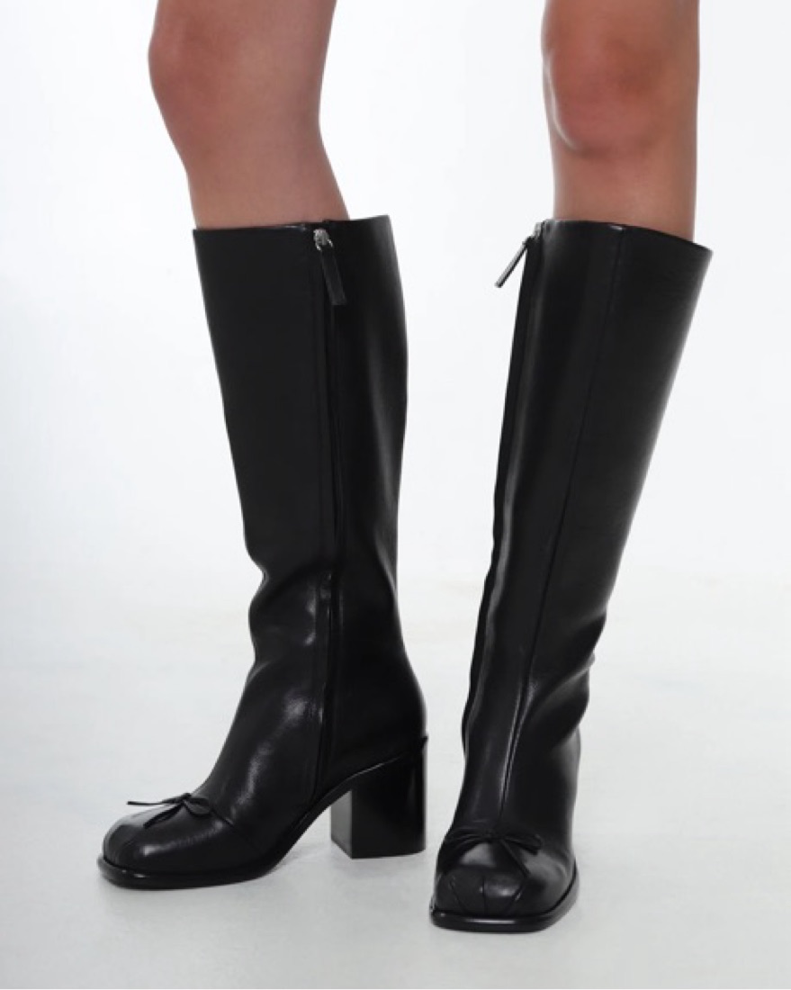 Knee High Pointe boot in Black Calf Leather Padded leather footbed Zip Closure Leather sole 75mm stacked leather heel