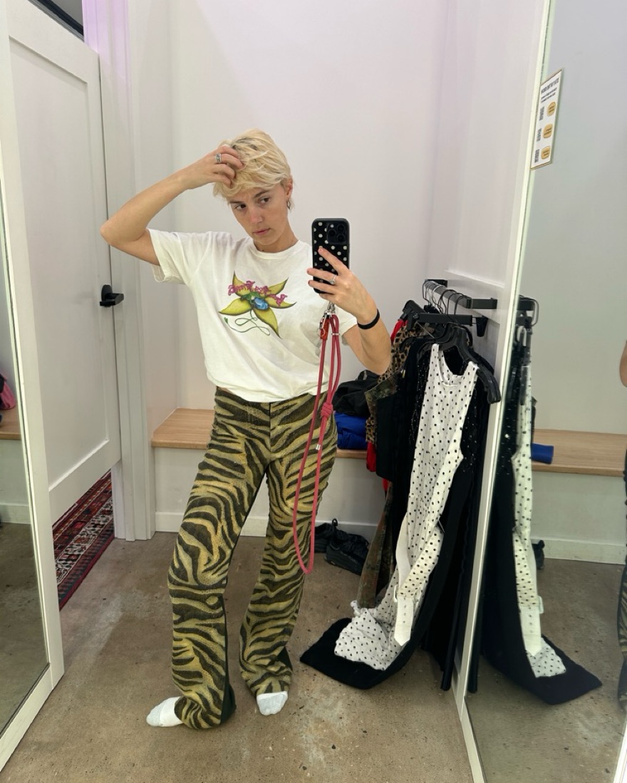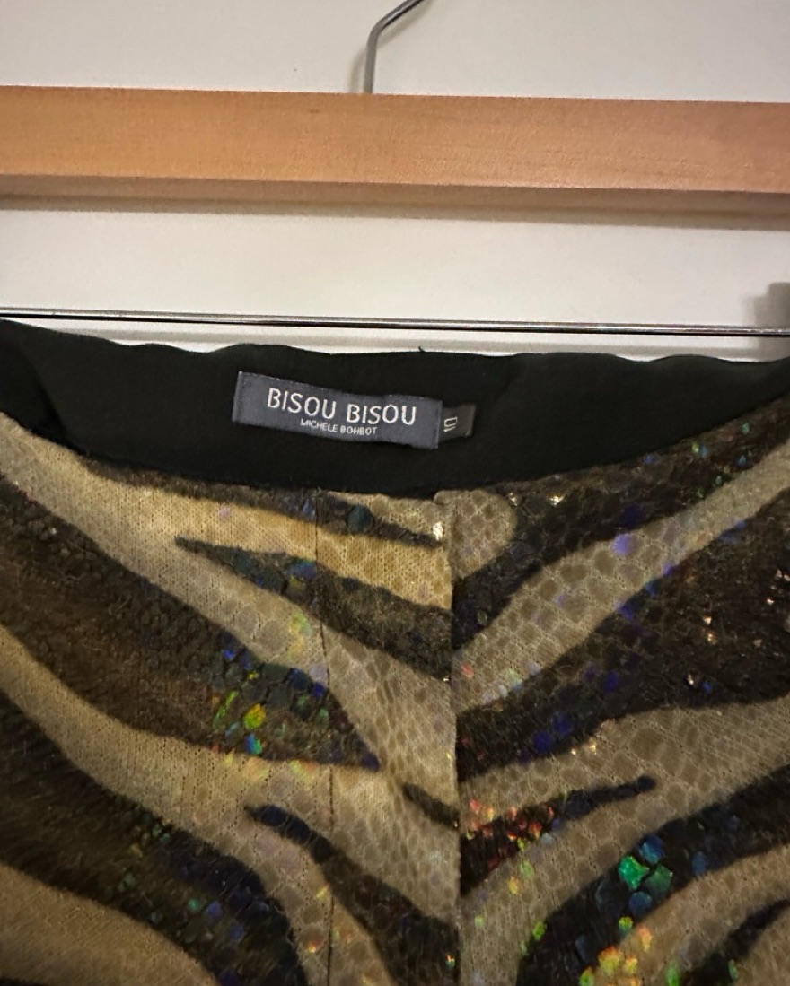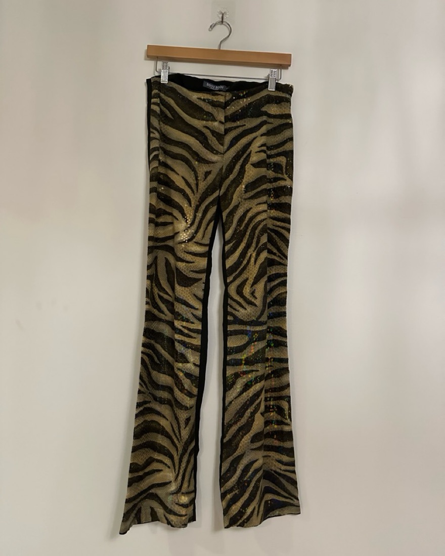 These bold zebra print pants are perfect for a night out on the town. Pair them with a sleek black top for a head-turning look.