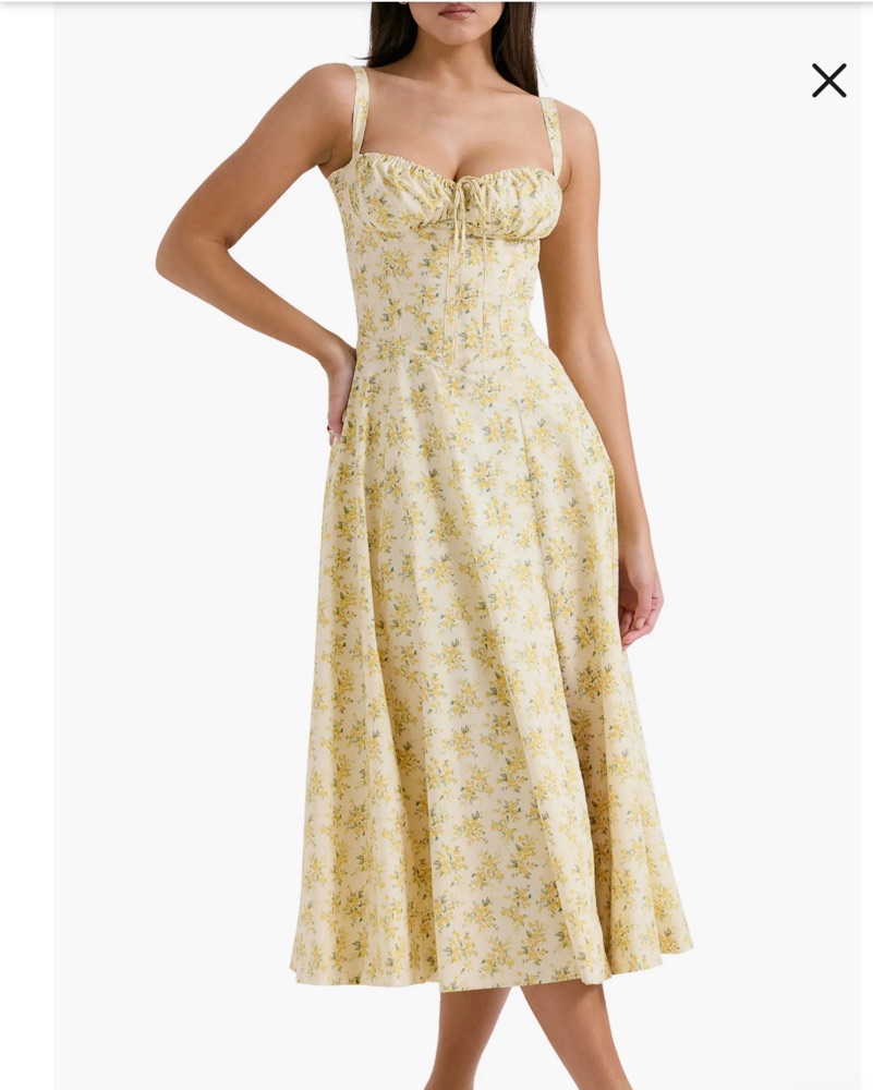 Yellow House of CB Lace Up Dress