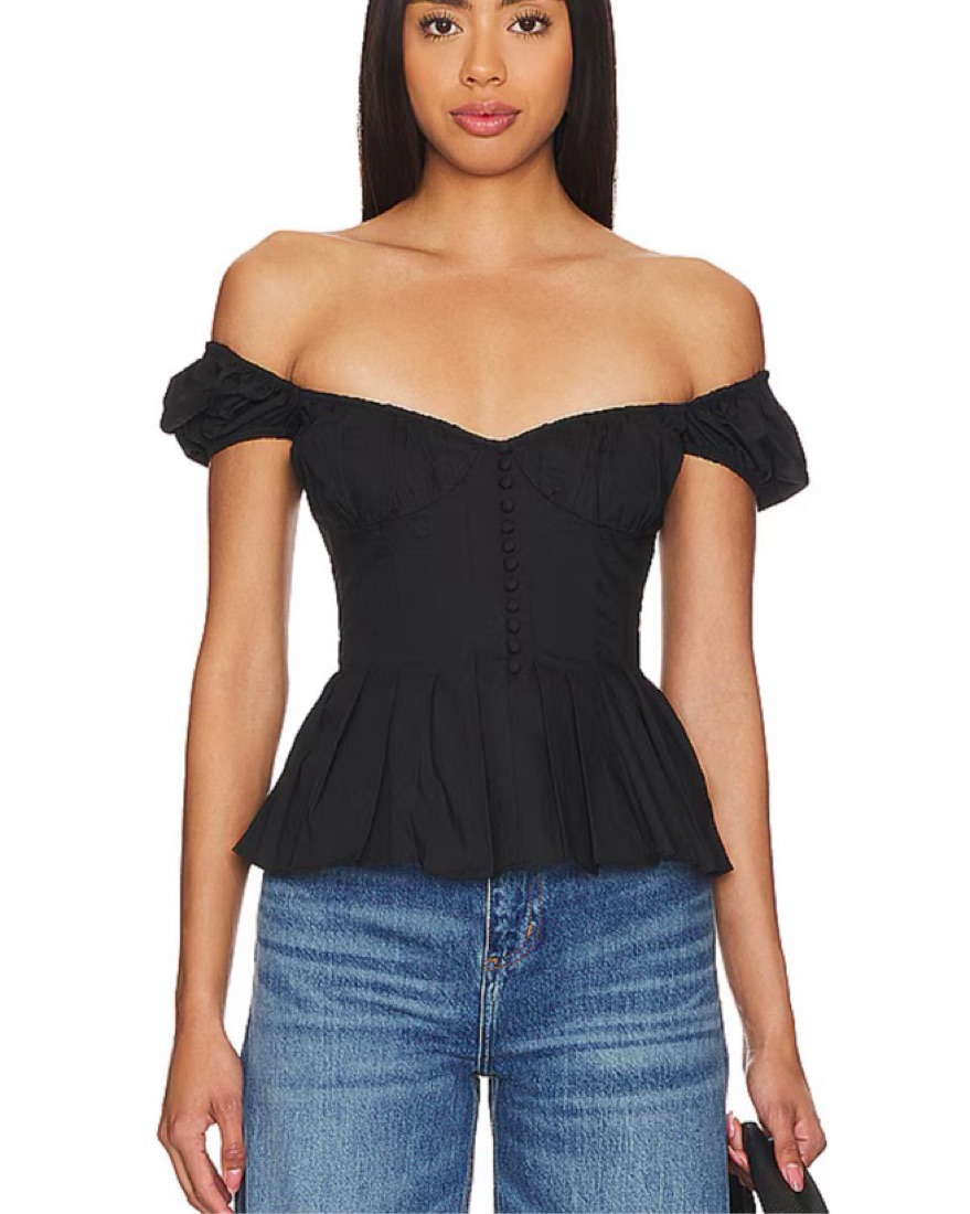 Bardot (from revolve) black corset top. Can be off the shoulder or on.