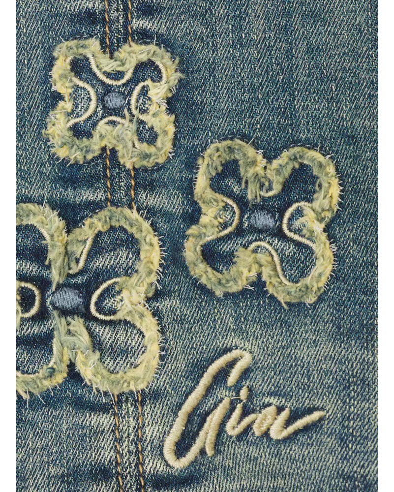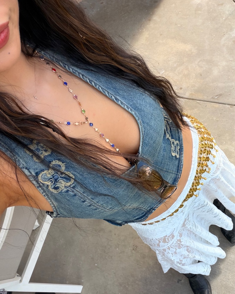 Denim vintage blue halter top with I am Gia embroidery. Perfect for spring, summer, festivals