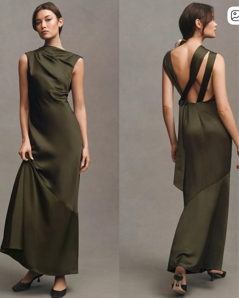 COWL-NECK TIE-BACK SATIN MAXI DRESS by Anthropologie - Pickle