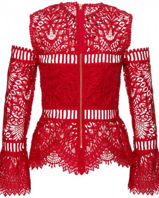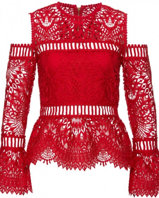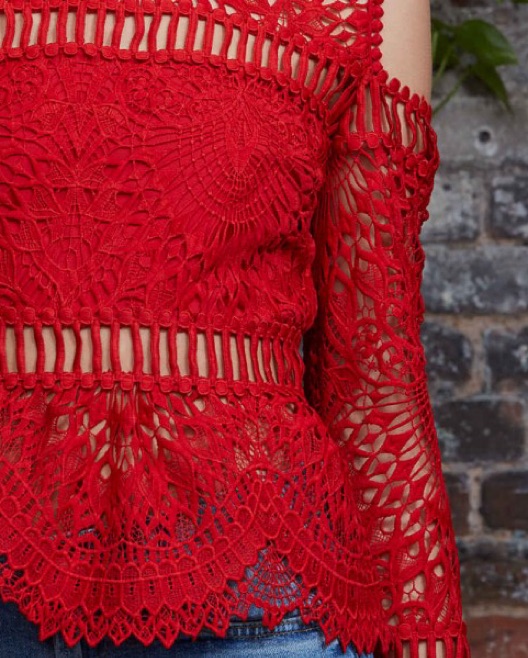 SAYLOR Red Lace Cold Shoulder Top