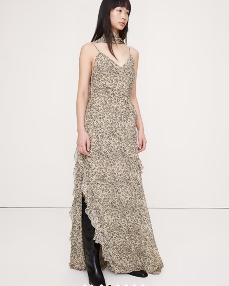 Georgette Ruffle Maxi Dress With Scarf by Banana Republic - Pickle