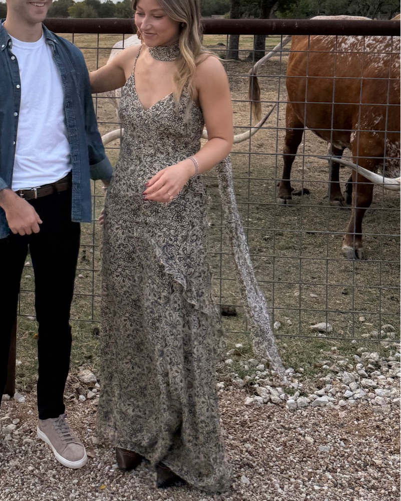 Georgette Ruffle Maxi Dress With Scarf
