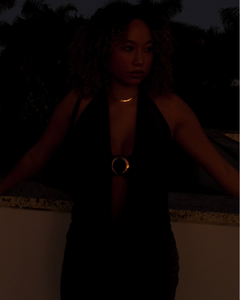 Low neck two piece top. So flattering