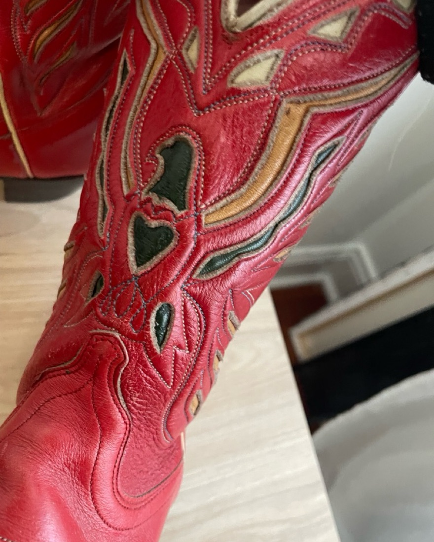 Red Cowgirl-Inspired Leather Boots