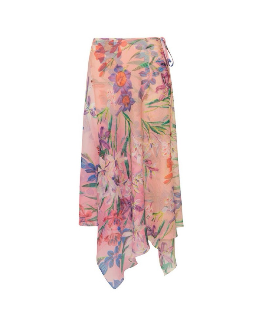 Two Piece - Skirt is an ultra lightweight semi-sheer chiffon fabric. Wrap fit with extra-long ties that are designed to wrap around the waist at least once. Unlined.