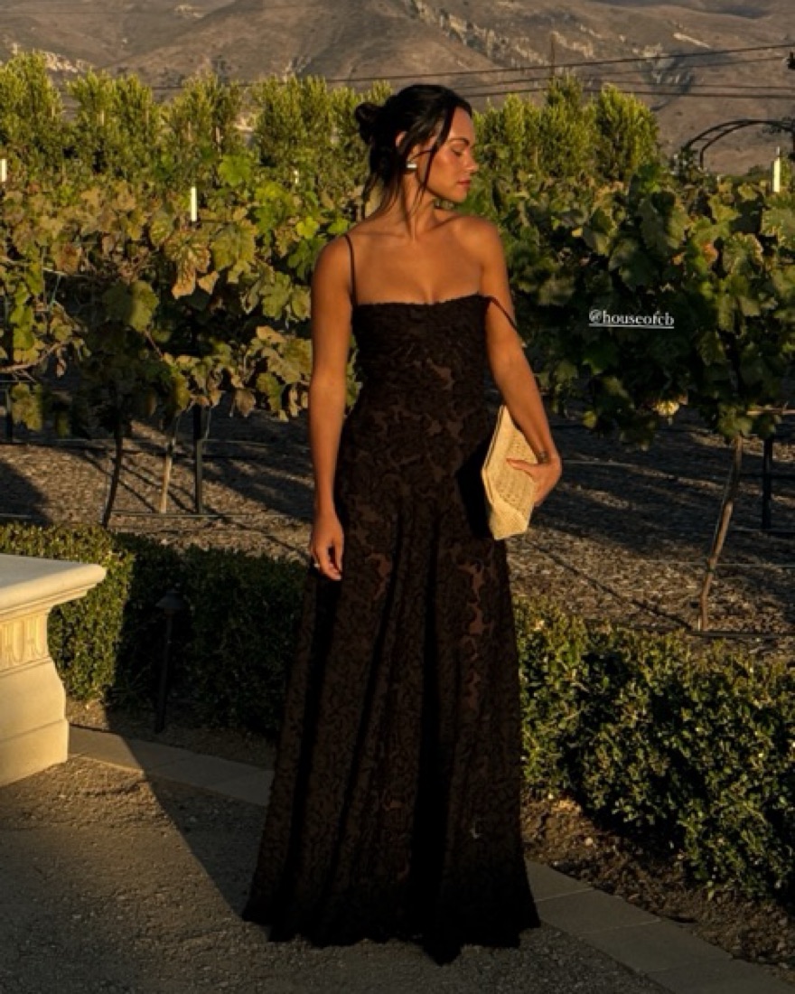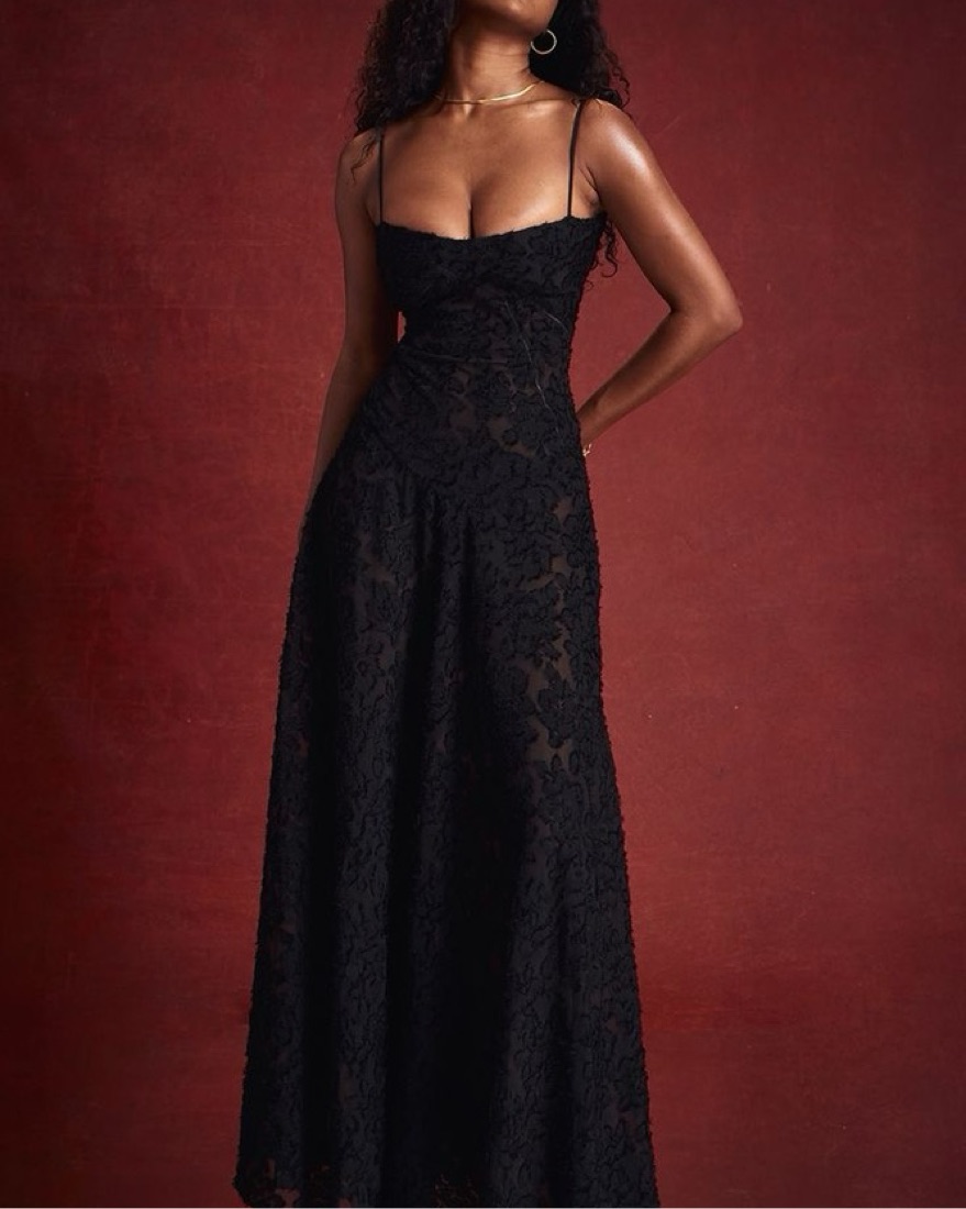 This captivating lace maxi dress exudes sophistication and allure. The figure-flattering silhouette and intricate lace details create a stunning look. So gorgeous for a wedding guest dress, red carpet, gala, or upscale event!