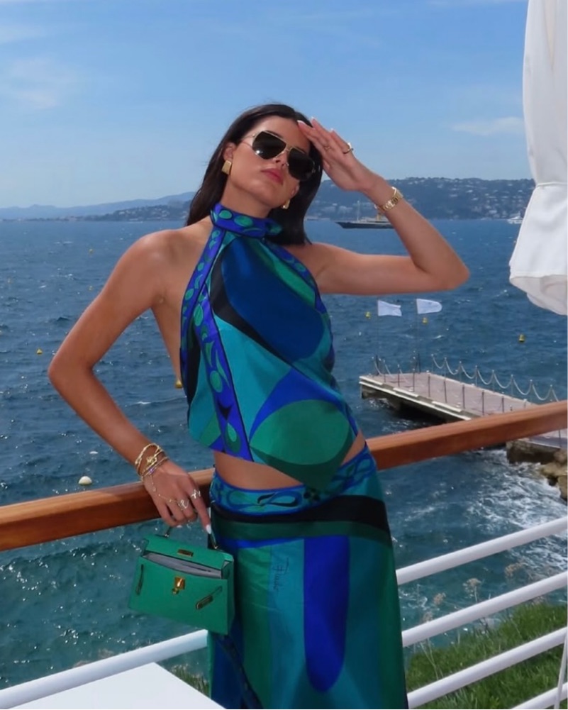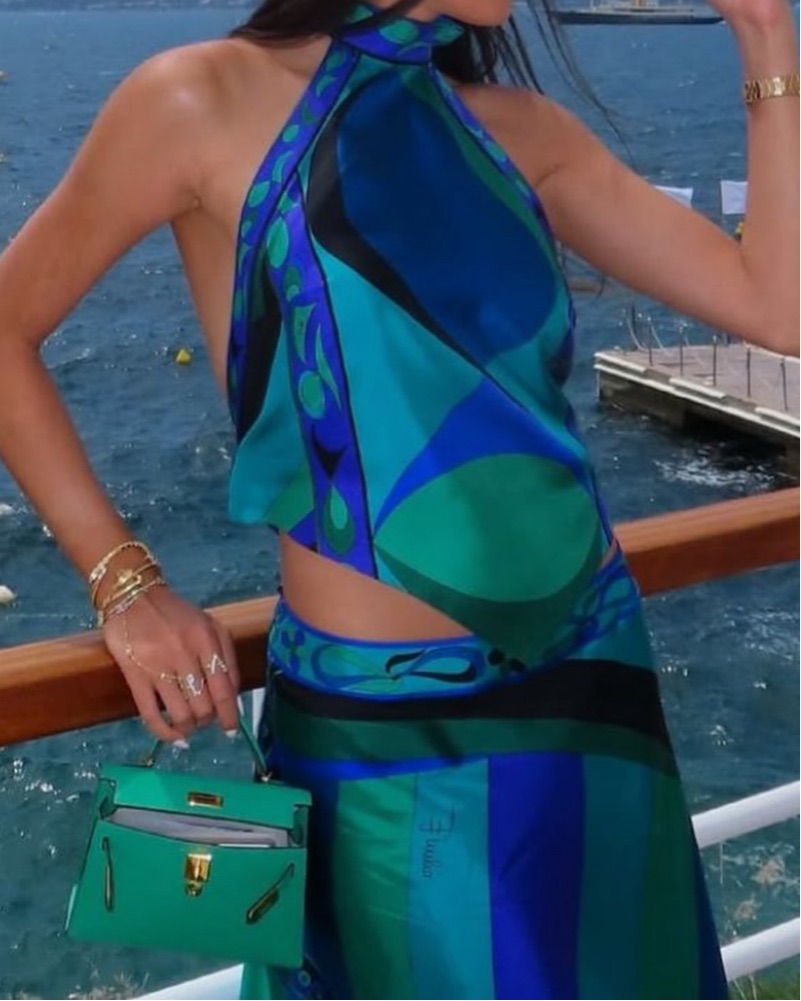 Gorgeous 100% silk tie top! Be extra careful of makeup, tanner, and eating with herππ» gorgeous deep blue colors. No skirt (sold out) cost includes dry cleaning! Sold out. Perfect summer to fall top. Pucci summer!! No shipping sorry π