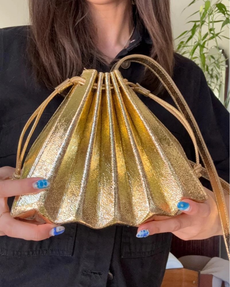 Created from a functional structure and in upcycling production. It's super cute and you can wear it crossbody with the strap or remove it and wear as a clutch